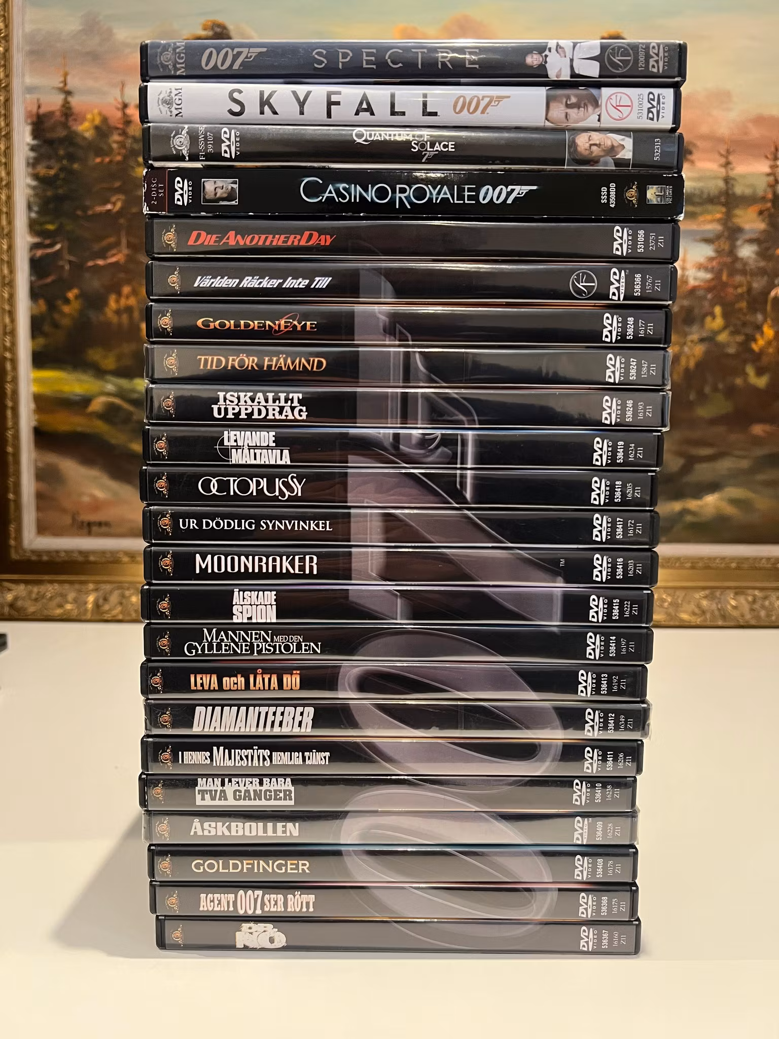 Den ultimata samlingen med 23 filmer, inklusive alla Àventyr med James Bond, Agent 007, frÄn Dr. No till Skyfall/Spectre. Upplev de klassiska tolkningarna av Sean Connery, Roger Moore och de moderna filmerna med Daniel Craig. En historisk samling fylld med action, spÀnning och ikoniska skurkar.