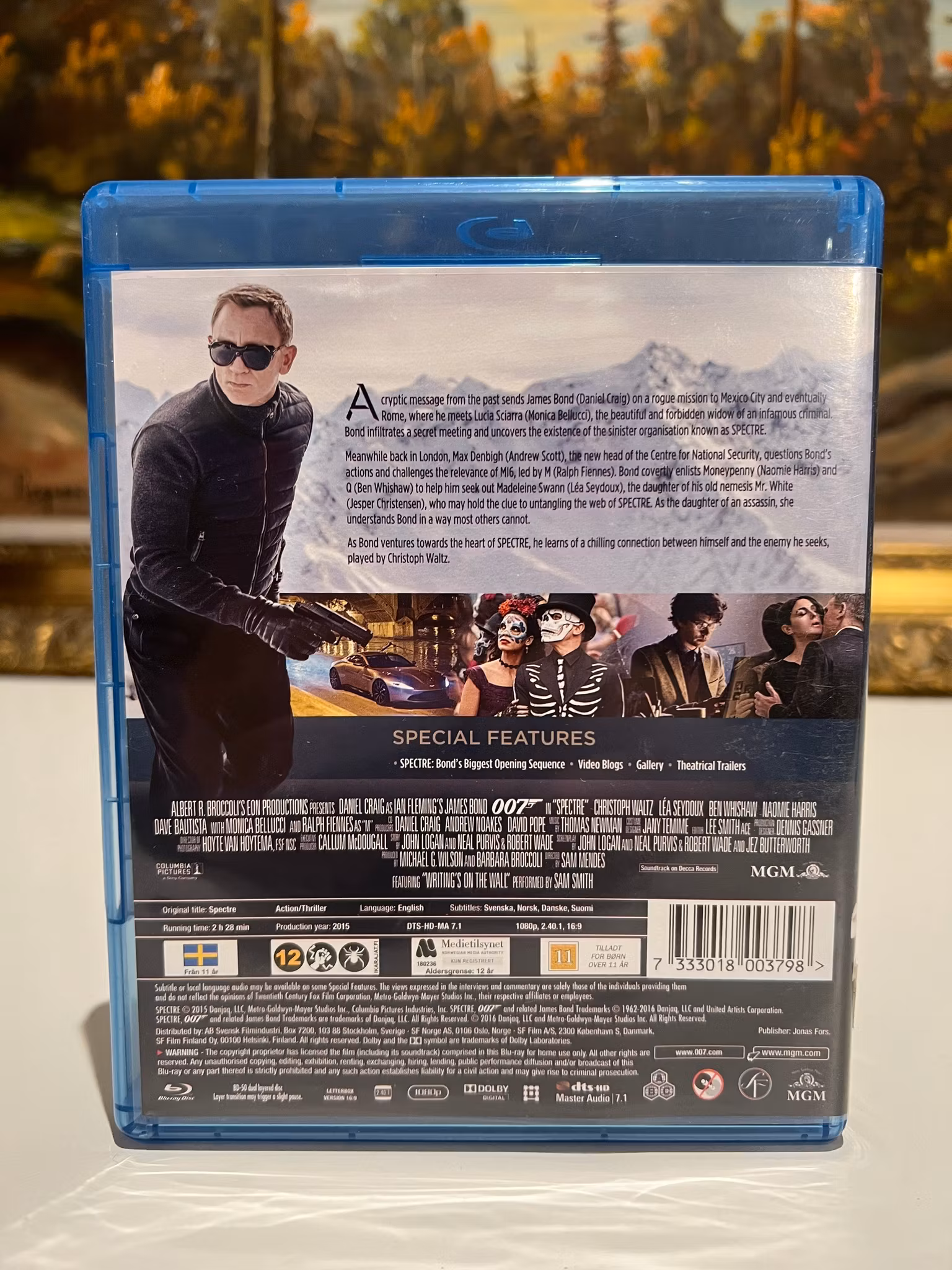 Samtidigt kÀmpar M (Ralph Fiennes), den nya chefen för Center for National Security, mot politiska krafter som vill lÀgga ner hela Sektionen 00. Medan Bond grÀver djupare i SPECTRE:s nÀtverk, dras han till den fördÀrvade dottern till sin gamla fiende. Bond upptÀcker snart att SPECTRE leds av en person (Christoph Waltz) som har en mörk och chockerande koppling till Bonds eget förflutna.