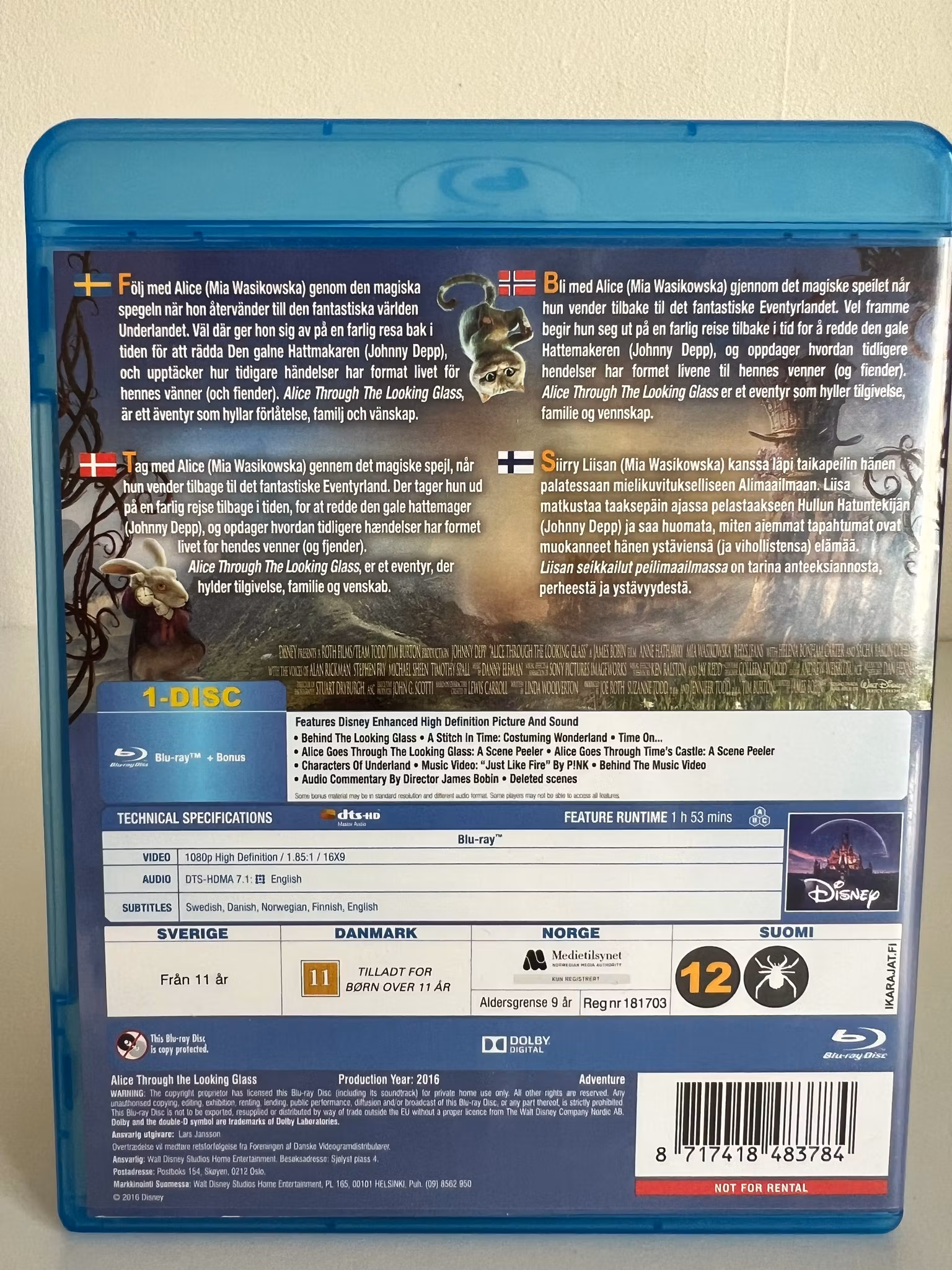 När Alice återvänder till den fantastiska världen Underlandet ger hon sig ut på en farlig resa bakåt i tiden för att rädda den galne Hattmakaren. På vägen upptäcker hon hur tidigare händelser har format livet för hennes vänner (och fiender). Alice Through the Looking Glass är ett spektakulärt äventyr som hyllar förlåtelse, familj och vänskap.