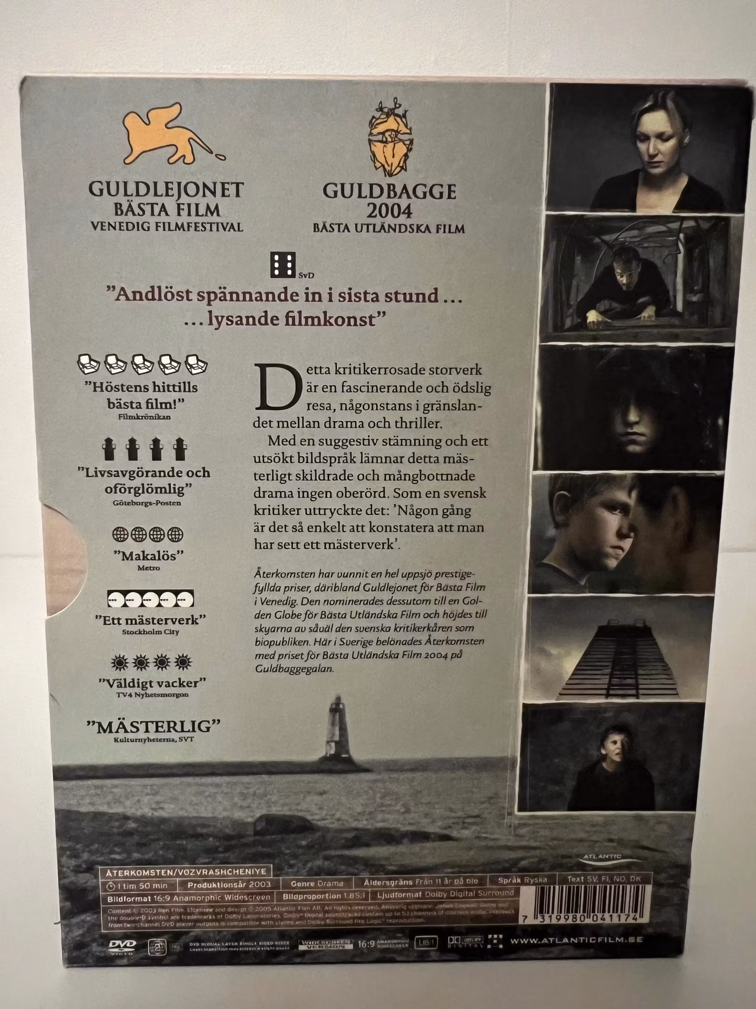 Detta kritikerrosade storverk Àr en fascinerande och ödslig resa, nÄgonstans i grÀnslandet mellan drama och thriller. Efter tolv Ärs frÄnvaro dyker en far plötsligt upp i sina tvÄ söners liv. Han tar med dem pÄ en fiskesemester till en avlÀgsen ö, men resan utvecklas snart till en psykologisk maktkamp och en prövning av lojalitet.