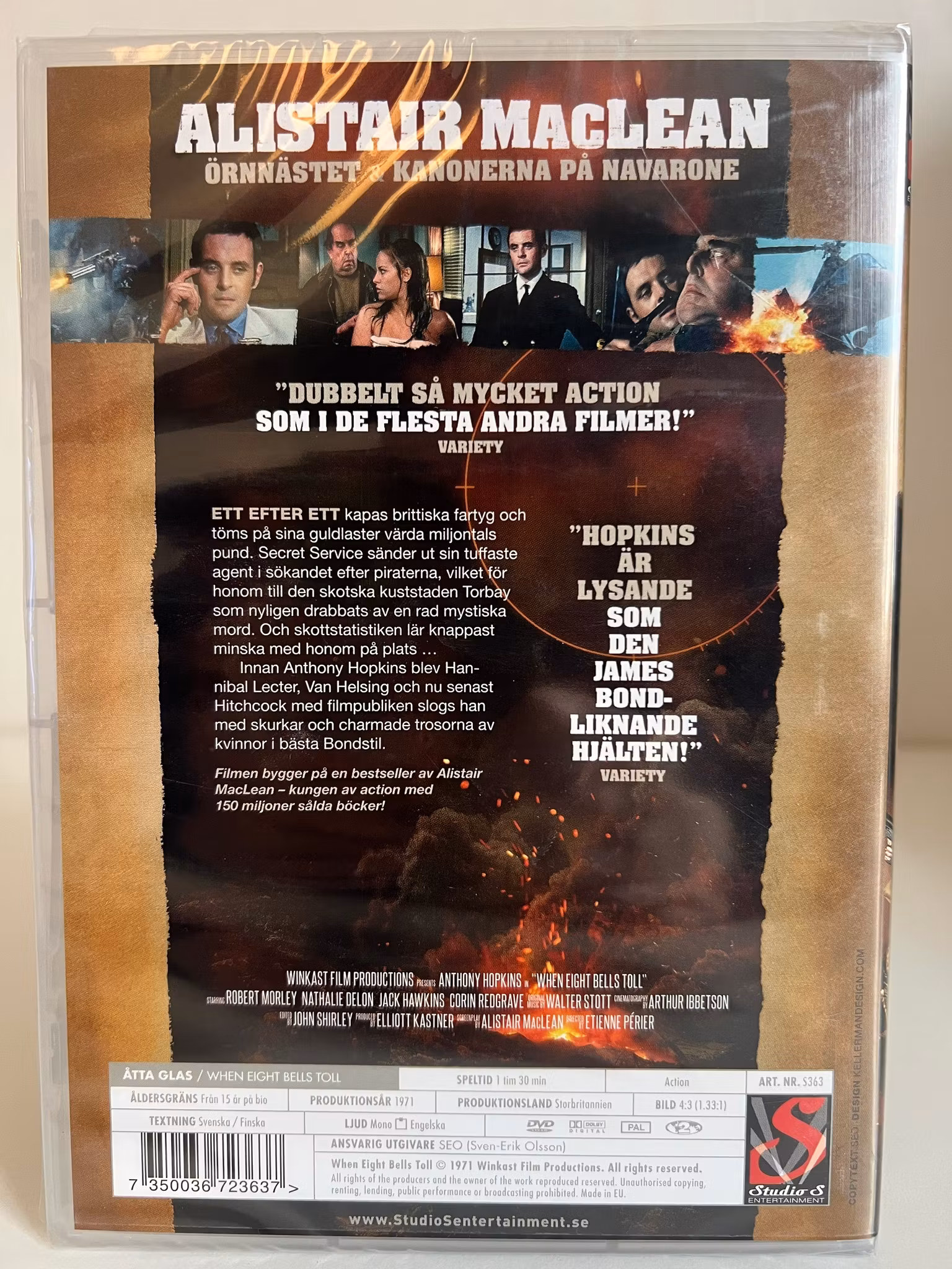 Innan Anthony Hopkins blev Hannibal Lecter, Van Helsing och nu senast Hitchcock slog han filmpubliken med hĂ€pnad med skurkar och charmade trosorna av kvinnor i bĂ€sta Bondstil. Filmen bygger pĂ„ en bestseller av Alistair MacLean â kungen av action med 150 miljoner sĂ„lda böcker, som Ă€ven ligger bakom succĂ©er som ĂrnnĂ€stet och Kanonerna pĂ„ Navarone.