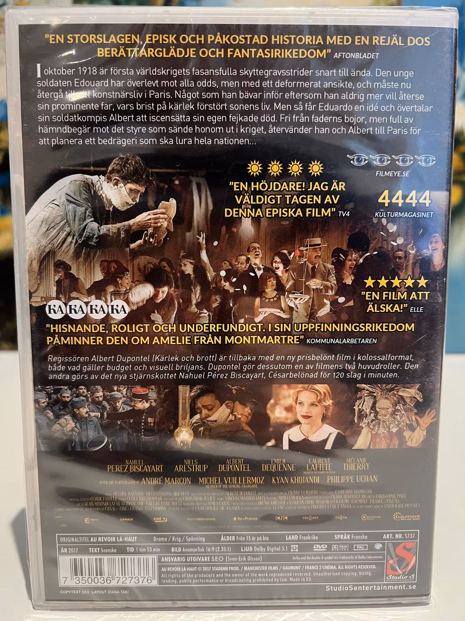 Oktober 1918. Första vÀrldskrigets fasansfulla skyttegravsstrider Àr snart till Ànda. Den unge soldaten Edouard har överlevt mot alla odds, men med ett deformerat ansikte. Han vÀgrar ÄtergÄ till sitt tidigare liv och övertalar istÀllet sin soldatkompis Albert att iscensÀtta hans död. Tillsammans i Paris planerar de ett bedrÀgeri som ska lura hela nationen...