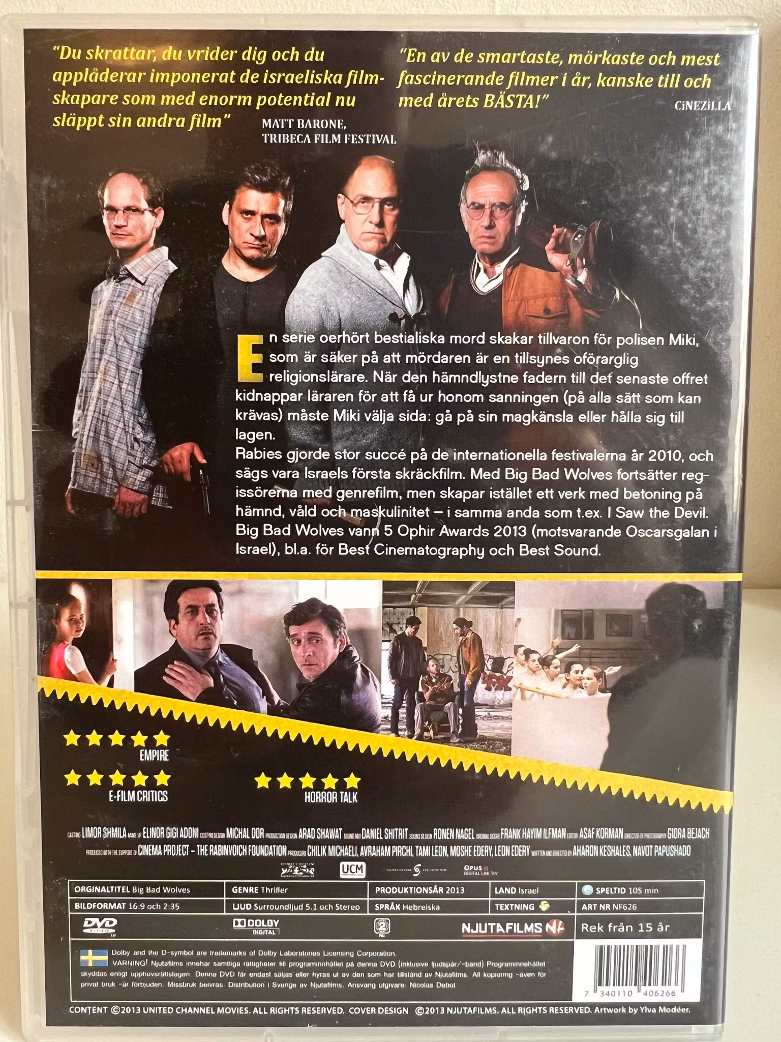 Efter succén med Rabies fortsÀtter regissörerna med genrefilm men skapar istÀllet ett verk med betoning pÄ hÀmnd, vÄld och maskulinitet i samma anda som I Saw the Devil. Big Bad Wolves vann hela 5 Ophir Awards 2013 (motsvarande Oscarsgalan i Israel).