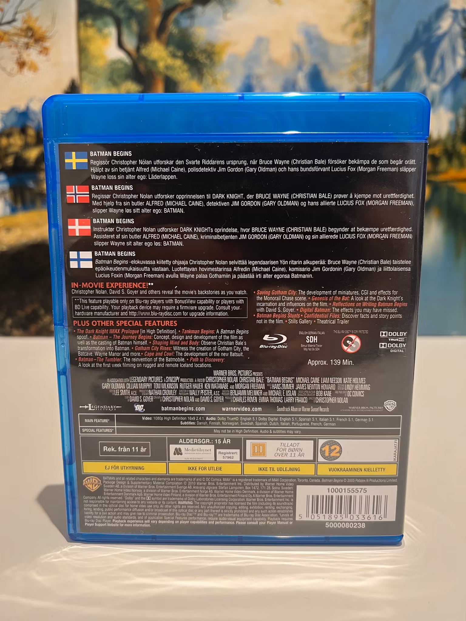 Special Features: In-Movie Experience!, Tankman Begins, Journey Begins, Shaping Mind and Body, Gotham City Rises, Cape and Cowl, Path to Discovery, Saving Gotham City, Genesis of the Bat, Reflections on Writing Batman Begins, Digital Batman, Stills Gallery, Theatrical Trailer.