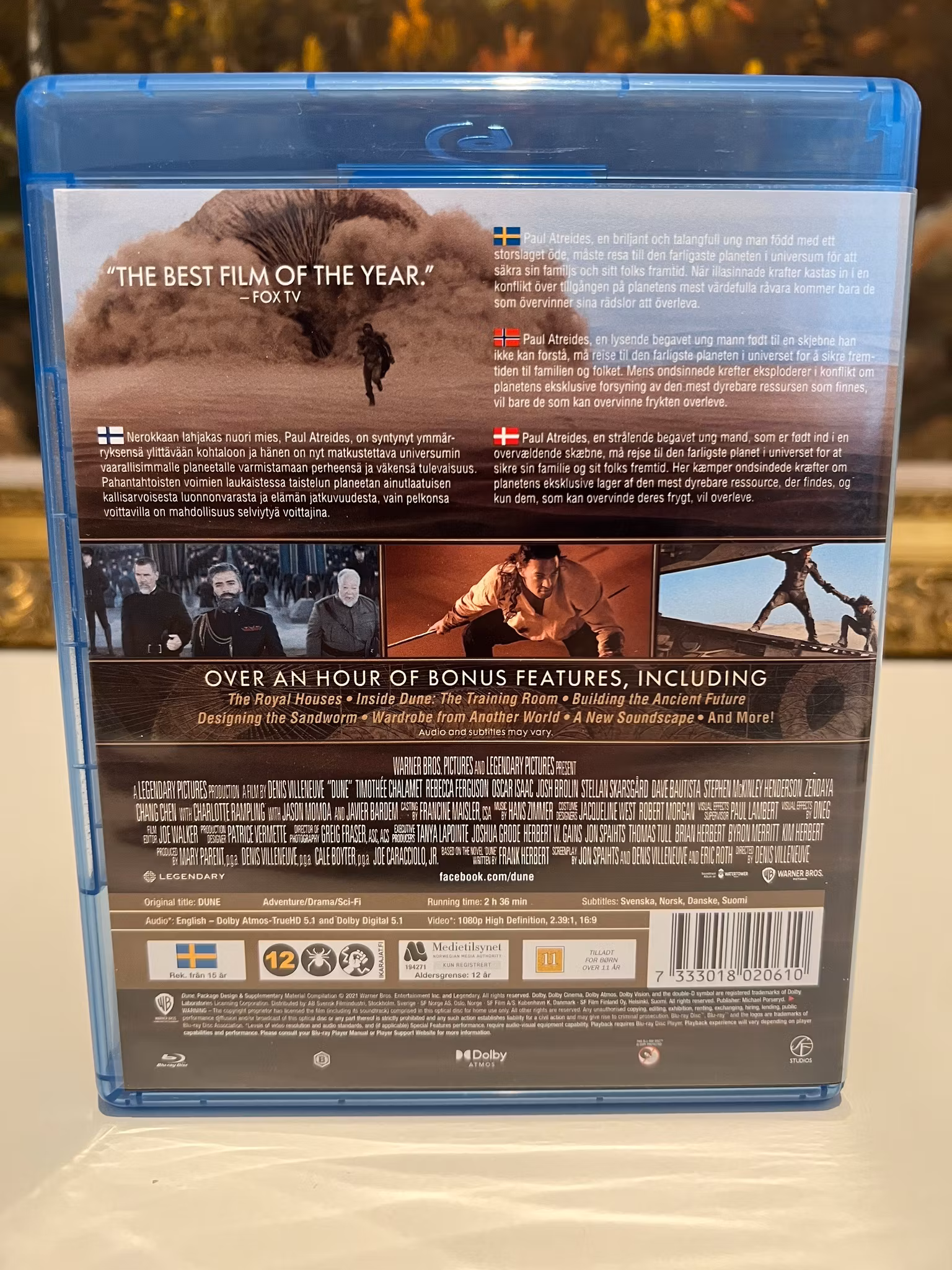 FrÄn den visionÀra regissören Denis Villeneuve (Arrival, Blade Runner 2049) kommer denna kritikerrosade och Oscarsbelönade filmatisering av Frank Herberts klassiska Sci-Fi-roman. Filmen Àr en storslagen och visuellt hisnande epik som vann sex Oscars, inklusive BÀsta Ljud och BÀsta Foto.