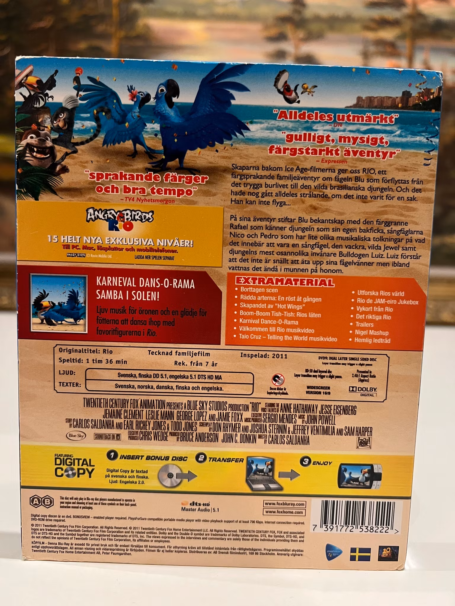 FrÄn skaparna bakom Ice Age kommer denna fÀrgsprakande, musikfyllda komedi. Filmen handlar om Blu, en sÀllsynt blÄ ara frÄn Minnesota, som skickas till Rio de Janeiro för att para sig med den sista överlevande honan av sin art. Men Blu, som inte kan flyga, blir snabbt bortförd och mÄste fly genom den brasilianska karnevalen.