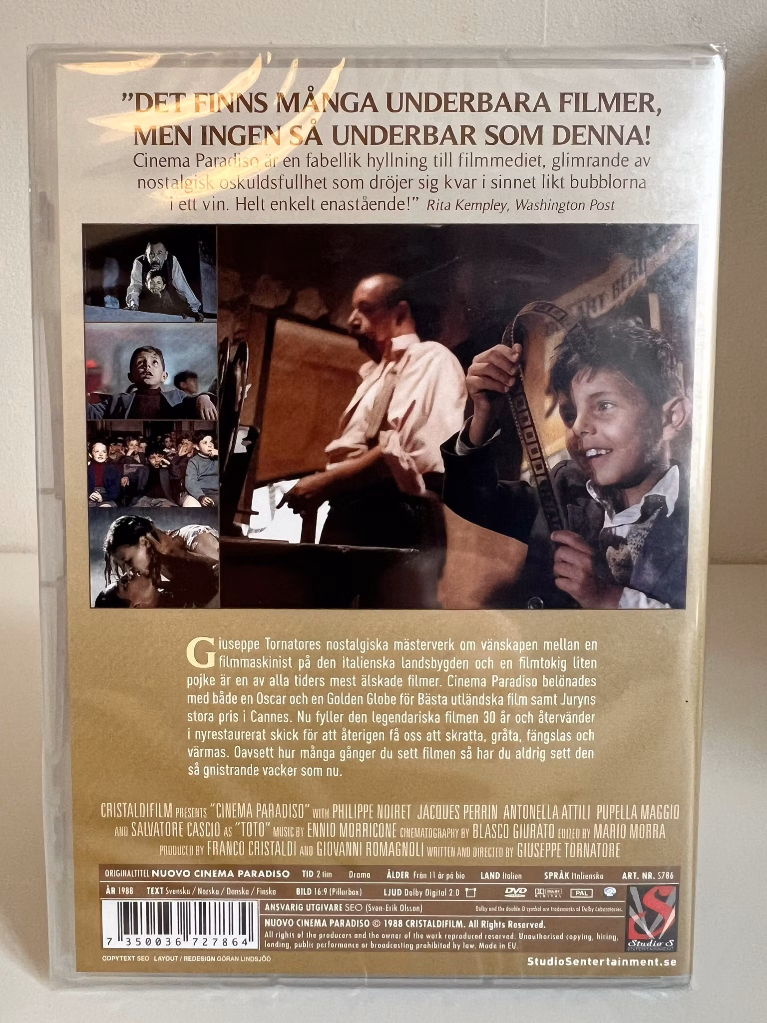 Cinema Paradiso belönades med bÄde en Oscar och en Golden Globe för BÀsta utlÀndska film samt Juryns stora pris i Cannes. Nu fyller den legendariska filmen 30 Är och ÄtervÀnder i nyrestaurerat skick för att Äterigen fÄ oss att skratta, grÄta, fÀngslas och vÀrmas. Oavsett hur mÄnga gÄnger du sett filmen sÄ har du aldrig sett den sÄ gnistrande vacker som nu.