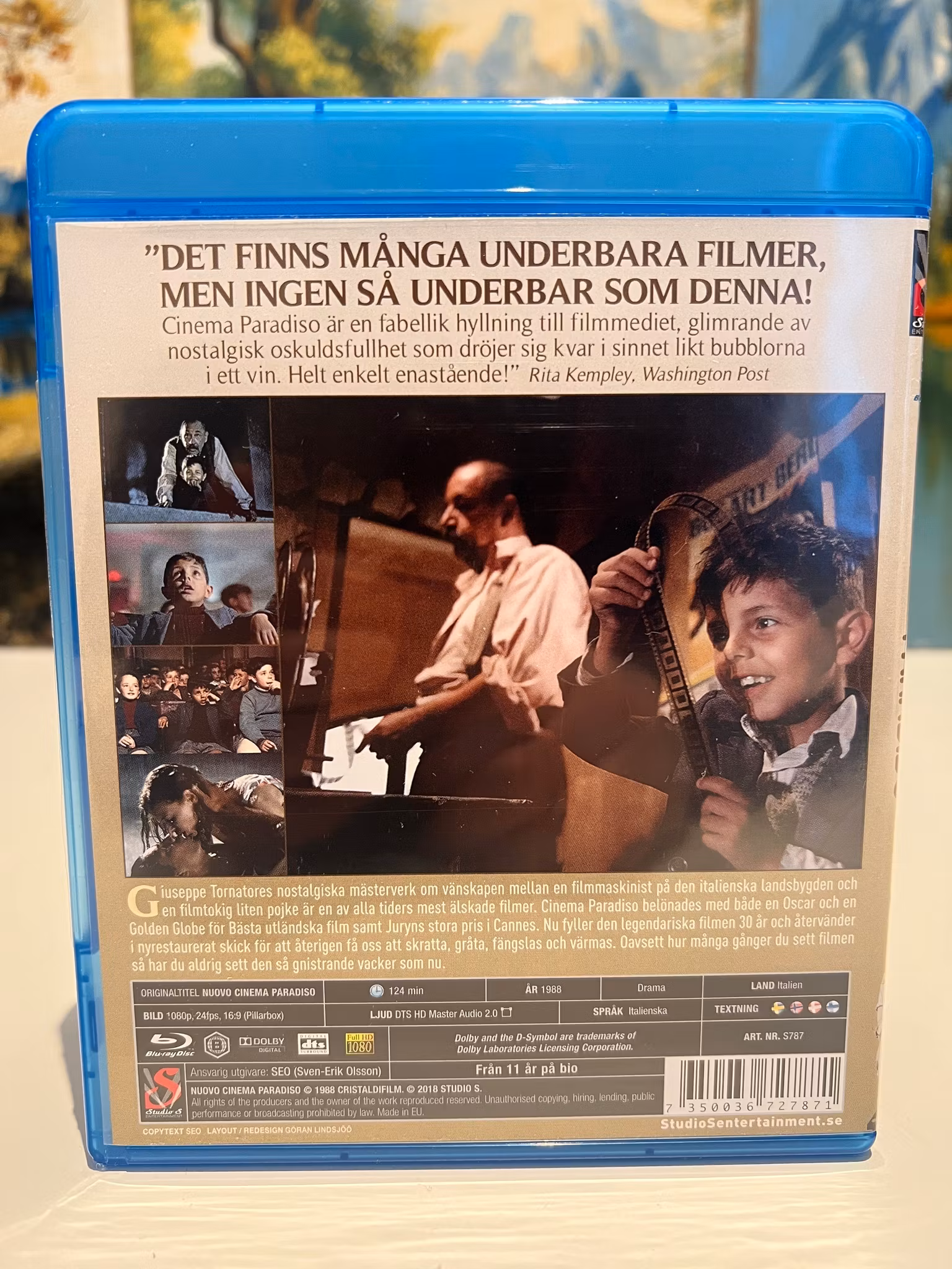 Giuseppe Tornatores nostalgiska mÀsterverk berÀttar historien om vÀnskapen mellan en filmmaskinist pÄ den italienska landsbygden och en filmtokig liten pojke. Filmen belönades med bÄde en Oscar och en Golden Globe för BÀsta utlÀndska film samt Juryns stora pris i Cannes. Nu ÄtervÀnder denna legendariska film i nyrestaurerat skick för att Äterigen fÄ oss att skratta, grÄta, fÀngslas och vÀrmas. Oavsett hur mÄnga gÄnger du sett filmen sÄ har du aldrig sett den sÄ gnistrande vacker som nu.