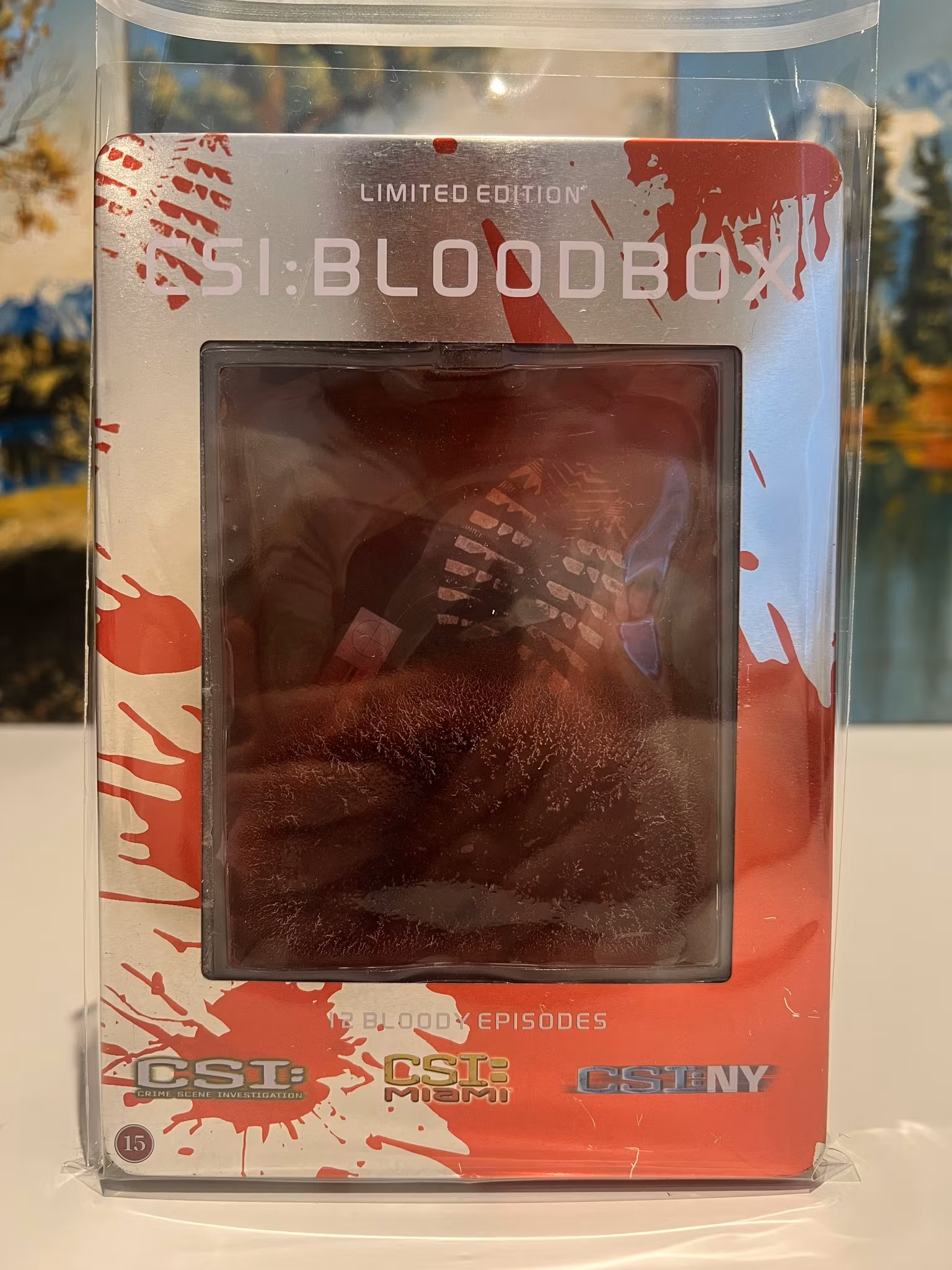 En blodig samling för det sanna CSI-fanet.Denna limiterade utgåva, Blood Box, samlar några av de mest intensiva, makabra och blodiga fallen från hela CSI-universumet. Boxen innehåller 12 utvalda avsnitt från CSI: Crime Scene Investigation, CSI: Miami och CSI: NY, där de kriminaltekniska teamen ställs inför sina hittills tuffaste utmaningar.