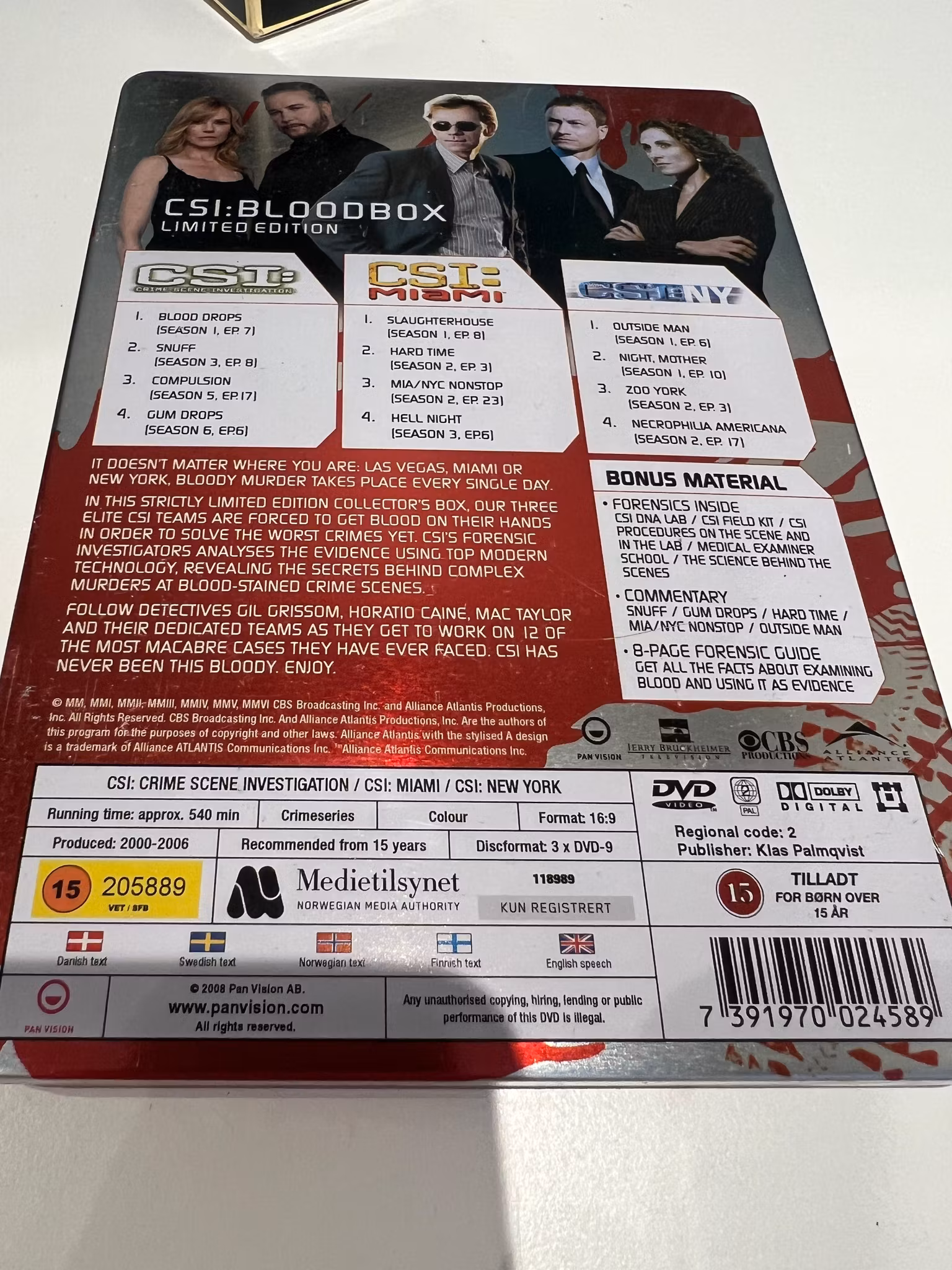 En unik samlarbox med spektakulär förpackning som verkligen sticker ut i hyllan. Perfekt för dig som vill ha det bästa (och värsta) av CSI samlat på ett ställe.