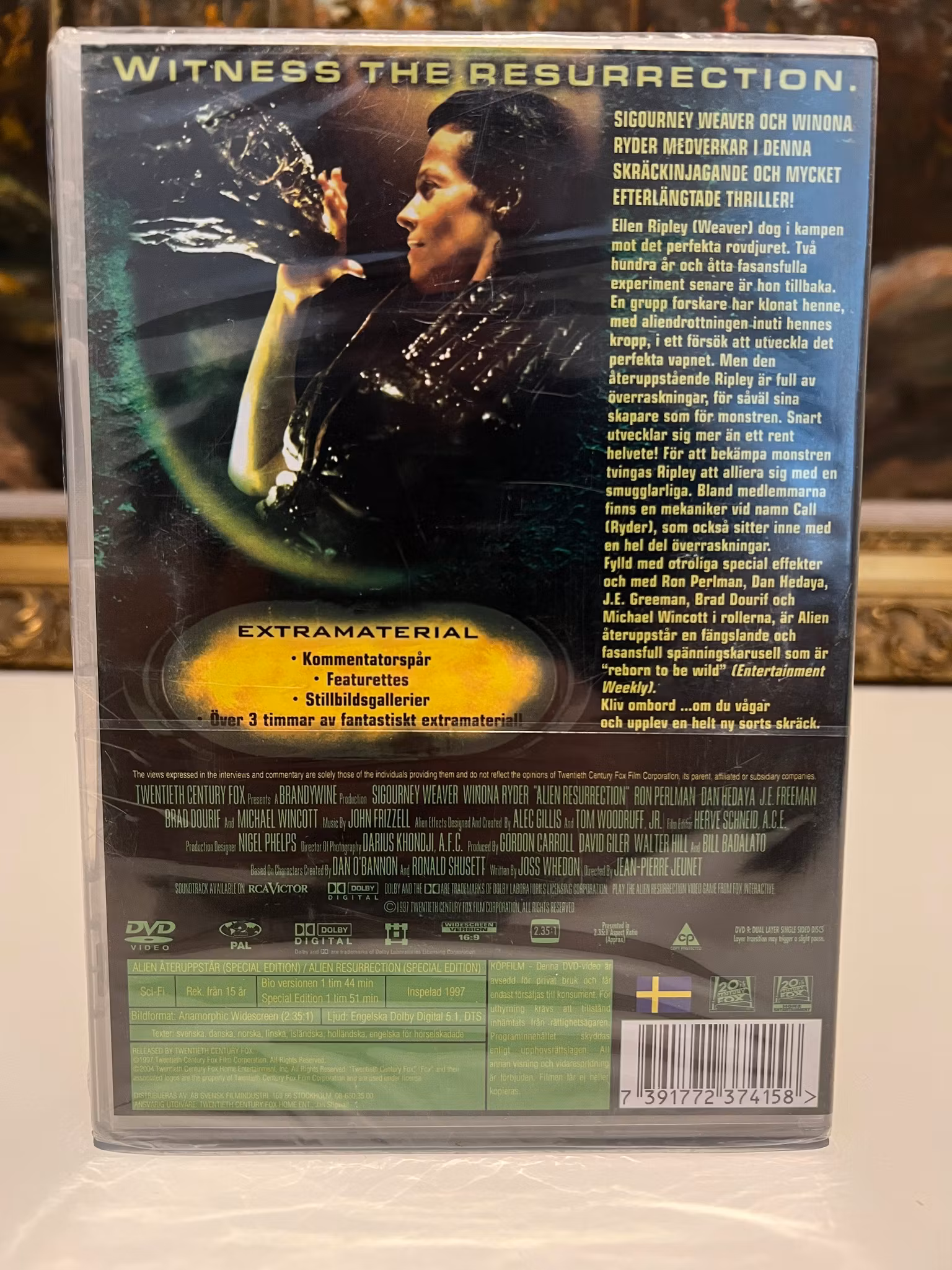 "WITNESS THE RESURRECTION." Den skräckinjagande och mycket spännande thrillern återupptar berättelsen om Ellen Ripley (Sigourney Weaver), som återvänder till livet 200 år efter sin död.