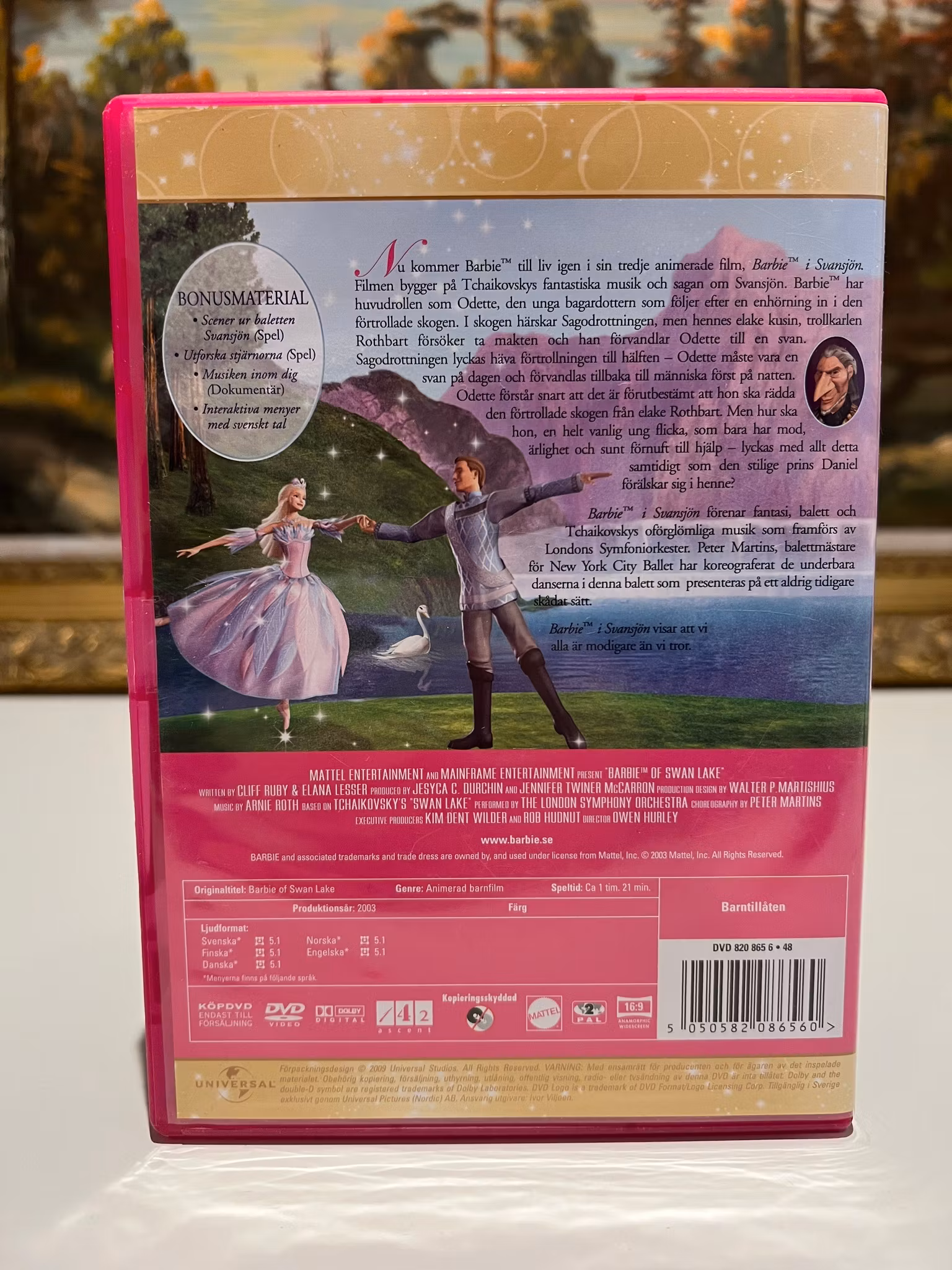 Följ Barbie i rollen som Odette, en ung flicka som genomgÄr en magisk förvandling i den förtrollade skogen. Denna tecknade klassiker Àr baserad pÄ den Àlskade baletten och innehÄller Tchaikovskys berömda musik. En vacker och spÀnnande film om mod och att tro pÄ sig sjÀlv.