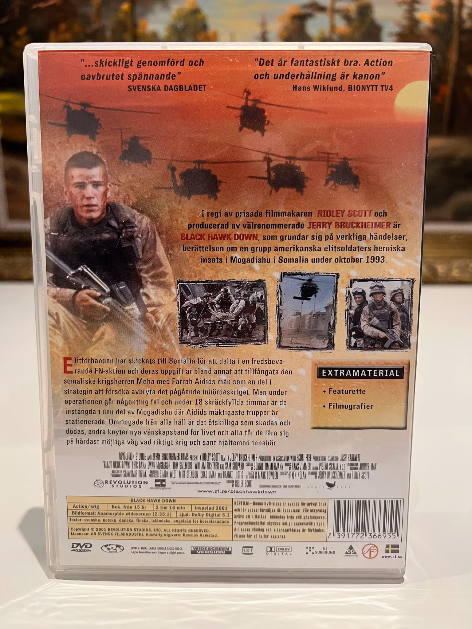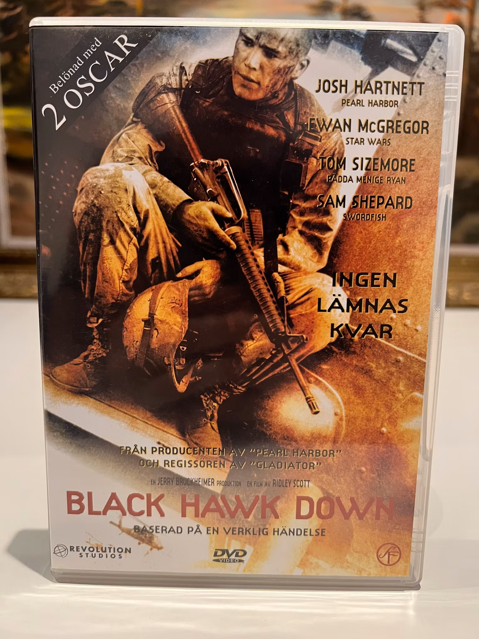 FrÄn regissören Ridley Scott kommer denna intensiva skildring av det verkliga Slaget om Mogadishu 1993. Filmen följer en grupp amerikanska elitsoldater som blir fast i en fientlig stad nÀr deras Black Hawk-helikoptrar skjuts ner. Filmen Àr hyllad för sin realism och sitt brutala tempo.