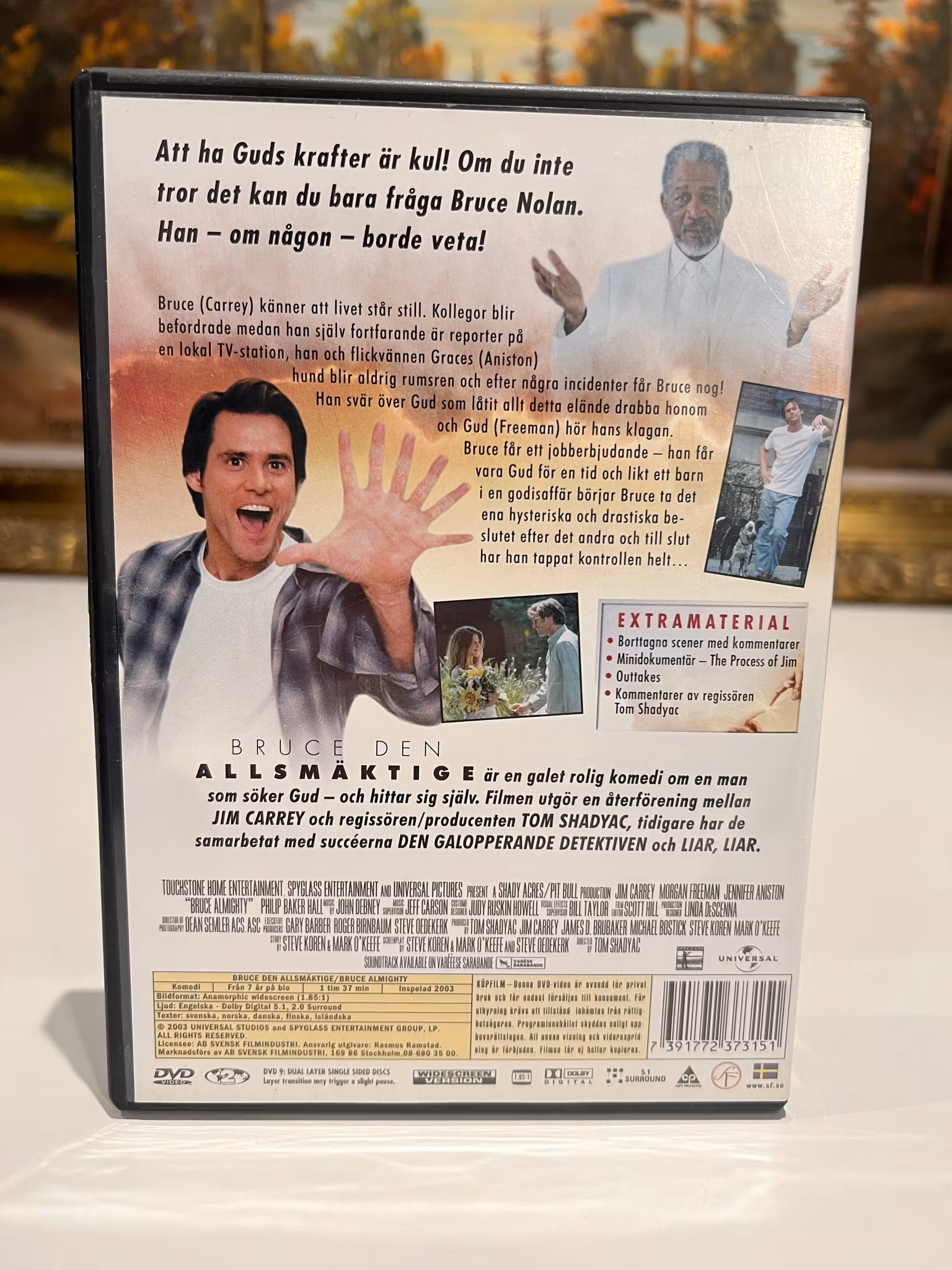 Nyhetsreportern Bruce Nolan (Jim Carrey) Àr frustrerad över sitt liv och skyller allt pÄ Gud. Gud (Morgan Freeman) bestÀmmer sig dÄ för att ge Bruce alla sina gudomliga krafter under en vecka. Men att vara allsmÀktig Àr svÄrare Àn Bruce tror! En skrattfest med Jennifer Aniston och en stark rollista.