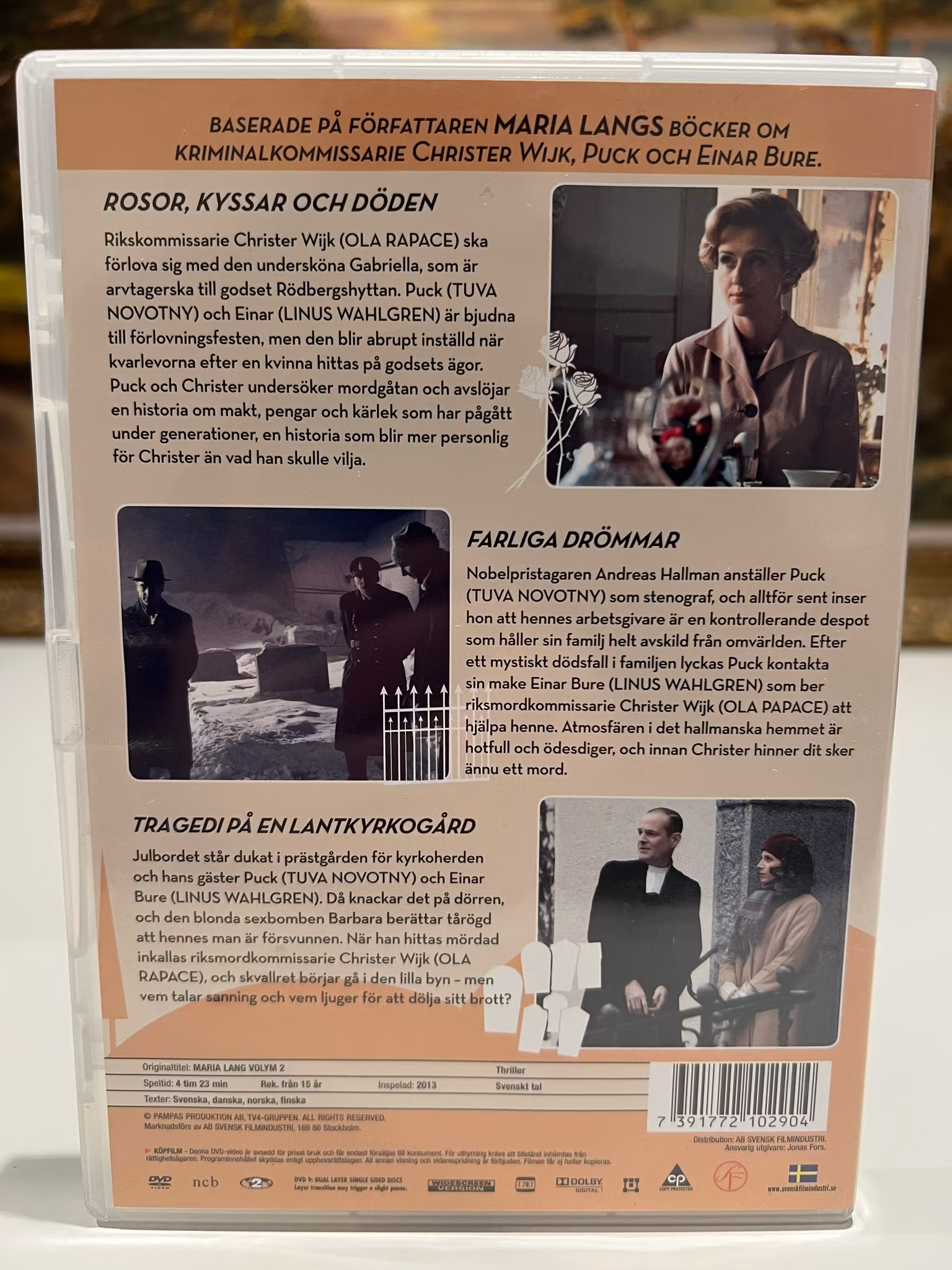 Denna box innehÄller tre spÀnnande filmer baserade pÄ Maria Langs Àlskade svenska deckarromaner: Rosor, Kyssar och Döden, Farliga Drömmar och Tragedi PÄ En LantkyrkogÄrd. Följ kriminalkommissarie Christer Wijk och hans team nÀr de löser intrikata mordgÄtor i de pittoreska miljöerna kring Bergslagen.