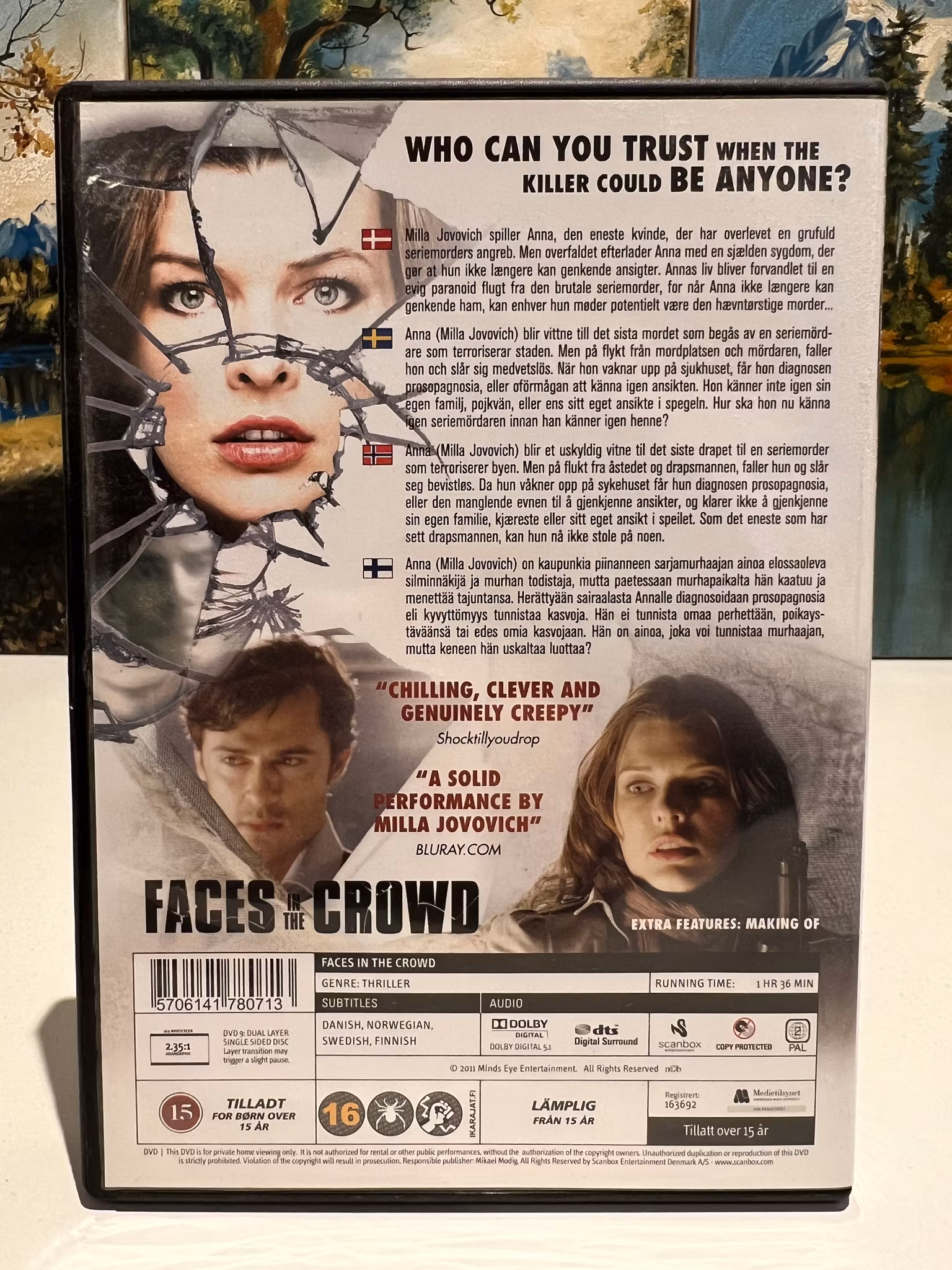 NÀr hon vaknar upp pÄ sjukhuset fÄr hon diagnosen prosopagnosia, eller oförmÄgan att kÀnna igen ansikten. Hon kÀnner inte igen sin egen familj, sin pojkvÀn eller ens sitt eget ansikte i spegeln. Hur ska hon nu kunna kÀnna igen seriemördaren innan han kÀnner igen henne? Som det enda vittnet som har sett drÄpsmannen kan hon nu inte lita pÄ nÄgon.