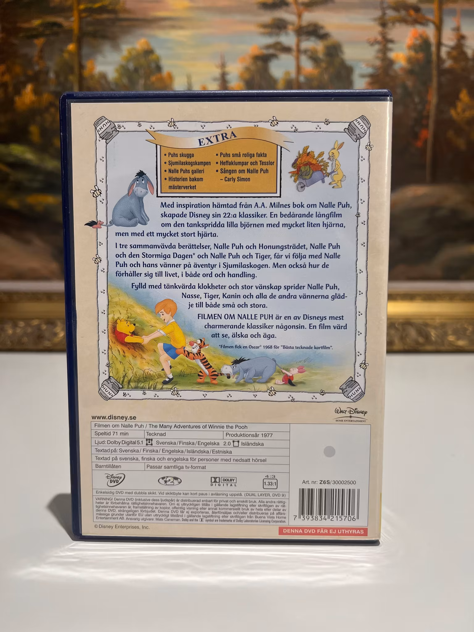 Denna film Àr en av Disneys mest Àlskade klassiker och bygger pÄ de tidlösa berÀttelserna av A.A. Milne. Filmen om Nalle Puh Àr en charmig och varm lÄngfilm, som faktiskt Àr sammansatt av tre Oscarsnominerade kortfilmer!