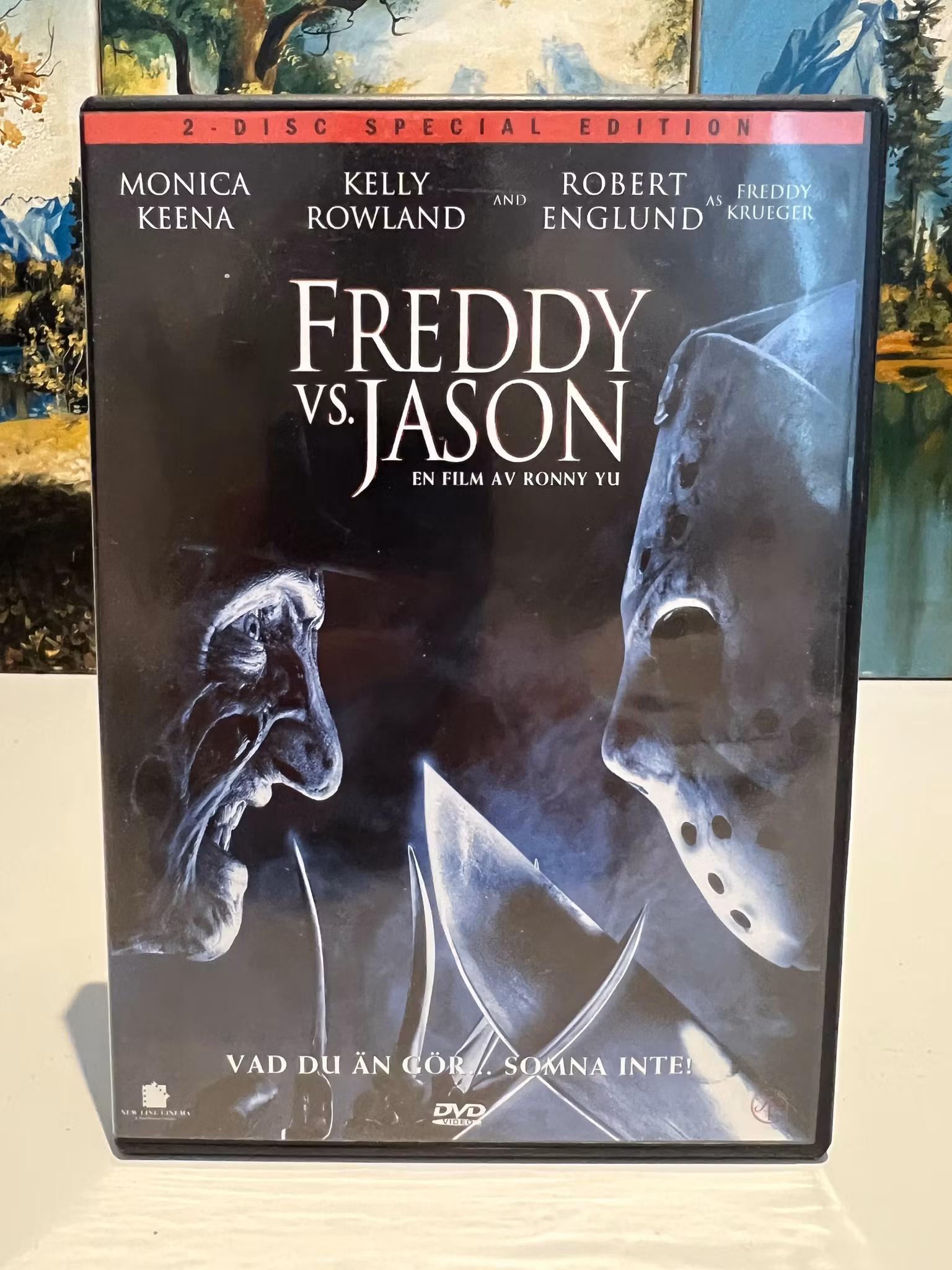 Men inget gĂ„r som planerat nĂ€r Jason fortsĂ€tter att mörda "hans barn". Det Ă€r upp till de överlevande tonĂ„ringarna att fĂ„ Jason tillbaka till Camp Crystal Lake och Freddy ut ur drömvĂ€rlden â en gĂ„ng för alla! En modern skrĂ€ckklassiker som stĂ€ller filmhistoriens tvĂ„ största mardrömsfigurer mot varandra i en blodig uppgörelse.
