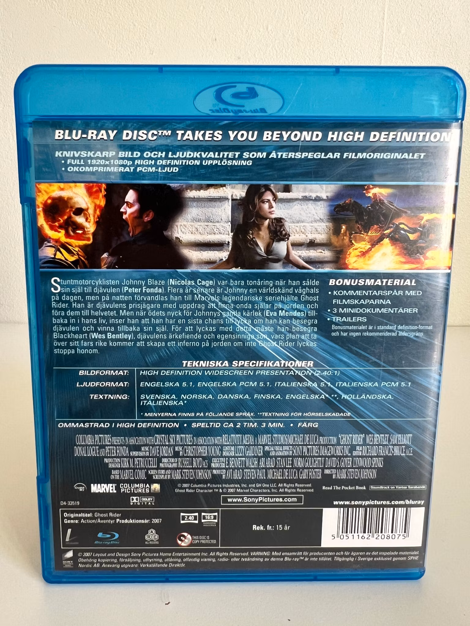 Stuntmotorcyklisten Johnny Blaze (Nicolas Cage) var bara tonåring när han sålde sin själ till djävulen (Peter Fonda). Flera år senare är Johnny en världskänd våghals på dagen, men på natten förvandlas han till Marvels legendariske seriehjälte Ghost Rider. Han är djävulens prisjägare med uppdrag att finna onda själar på jorden och föra dem till helvetet.