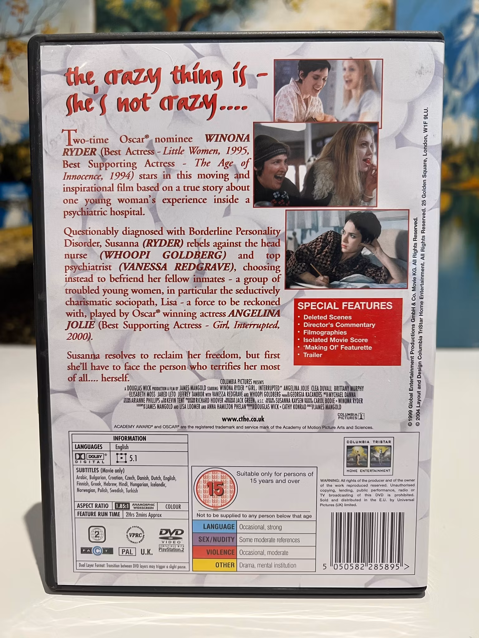 DĂ€r möter hon en grupp trasiga men fĂ€ngslande unga kvinnor, inklusive den karismatiska och manipulatĂva Lisa, spelad av Angelina Jolie. Jolie belönades med en Oscar för bĂ€sta kvinnliga biroll för sin intensiva tolkning. Filmen Ă€r en gripande skildring av vĂ€nskap, identitet och grĂ€nsen mellan normalitet och galenskap.