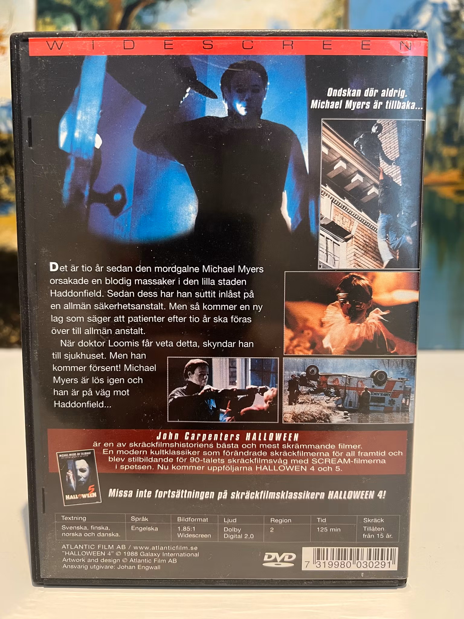 NÀr doktor Loomis fÄr veta detta skyndar han till sjukhuset, men han kommer för sent. Michael Myers Àr lös igen och han Àr pÄ vÀg mot Haddonfield för att slutföra det han pÄbörjade. Halloween 4 betraktas som en modern kultklassiker som förÀndrade skrÀckfilmerna för framtiden och banade vÀg för 90-talets vÄg av slasher-filmer. Missa inte fortsÀttningen pÄ en av filmhistoriens mest skrÀmmande serier.