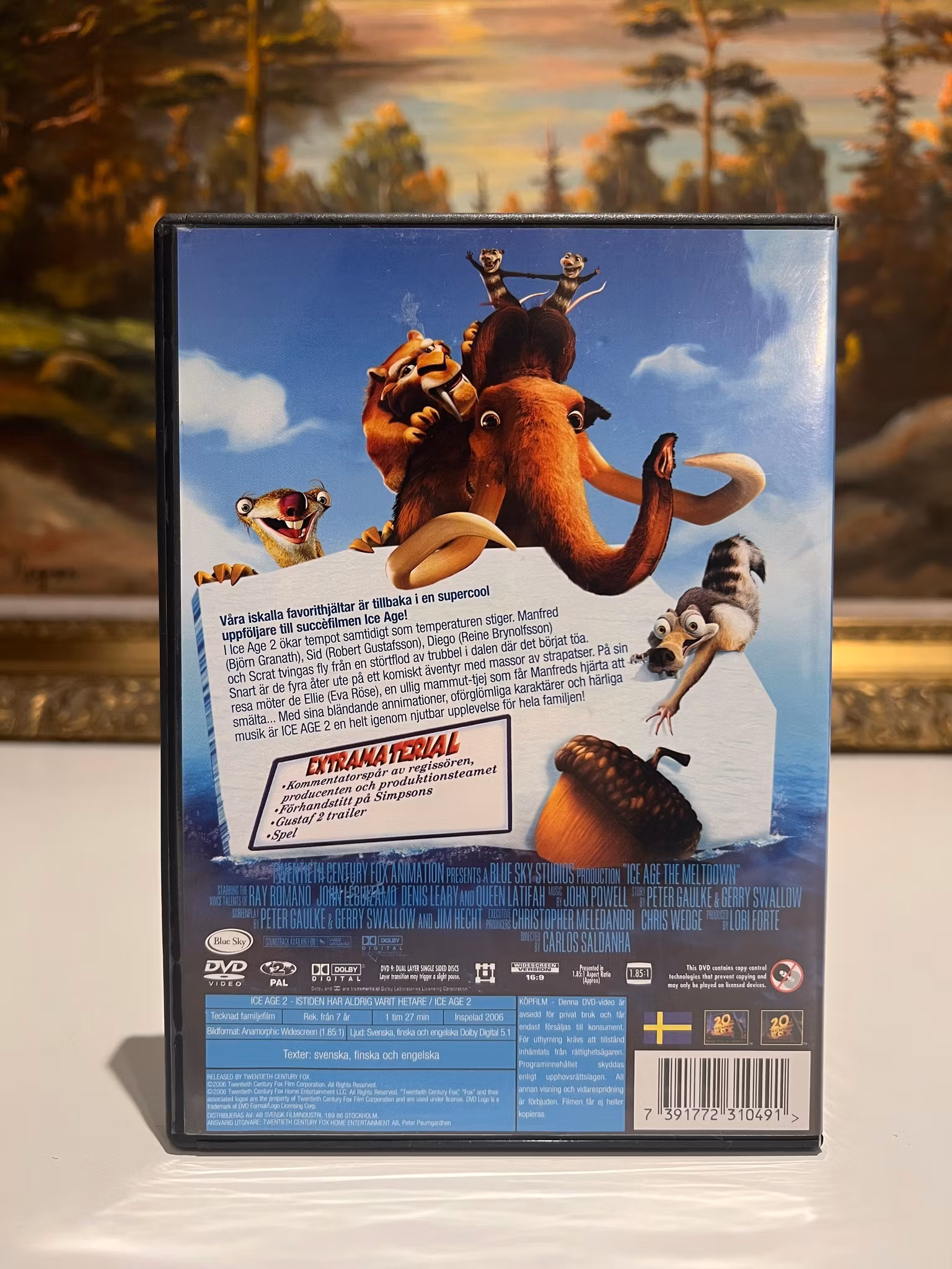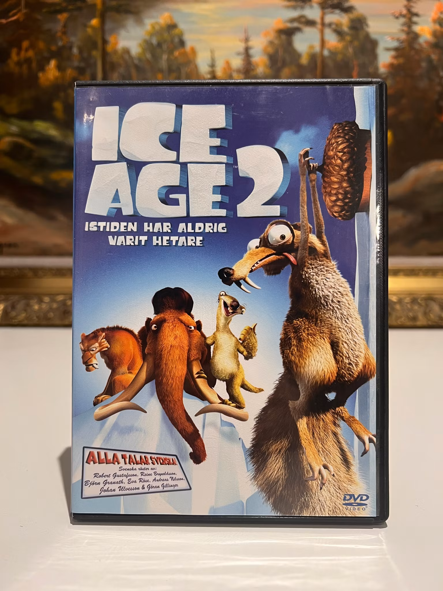 På vägen stöter de på den enda hon-mamuten, Ellie (Eva Röse), och hennes två bröder, Crash & Eddie. Ellie tror att hon är en opossum, vilket skapar roliga förvecklingar. Samtidigt fortsätter den evigt otursförföljda ekorren Scrat sin desperata jakt på det oemotståndliga ekollonet, som hela tiden leder till nya katastrofer. Filmen är ett fartfyllt och högoktanigt äventyr för hela familjen!