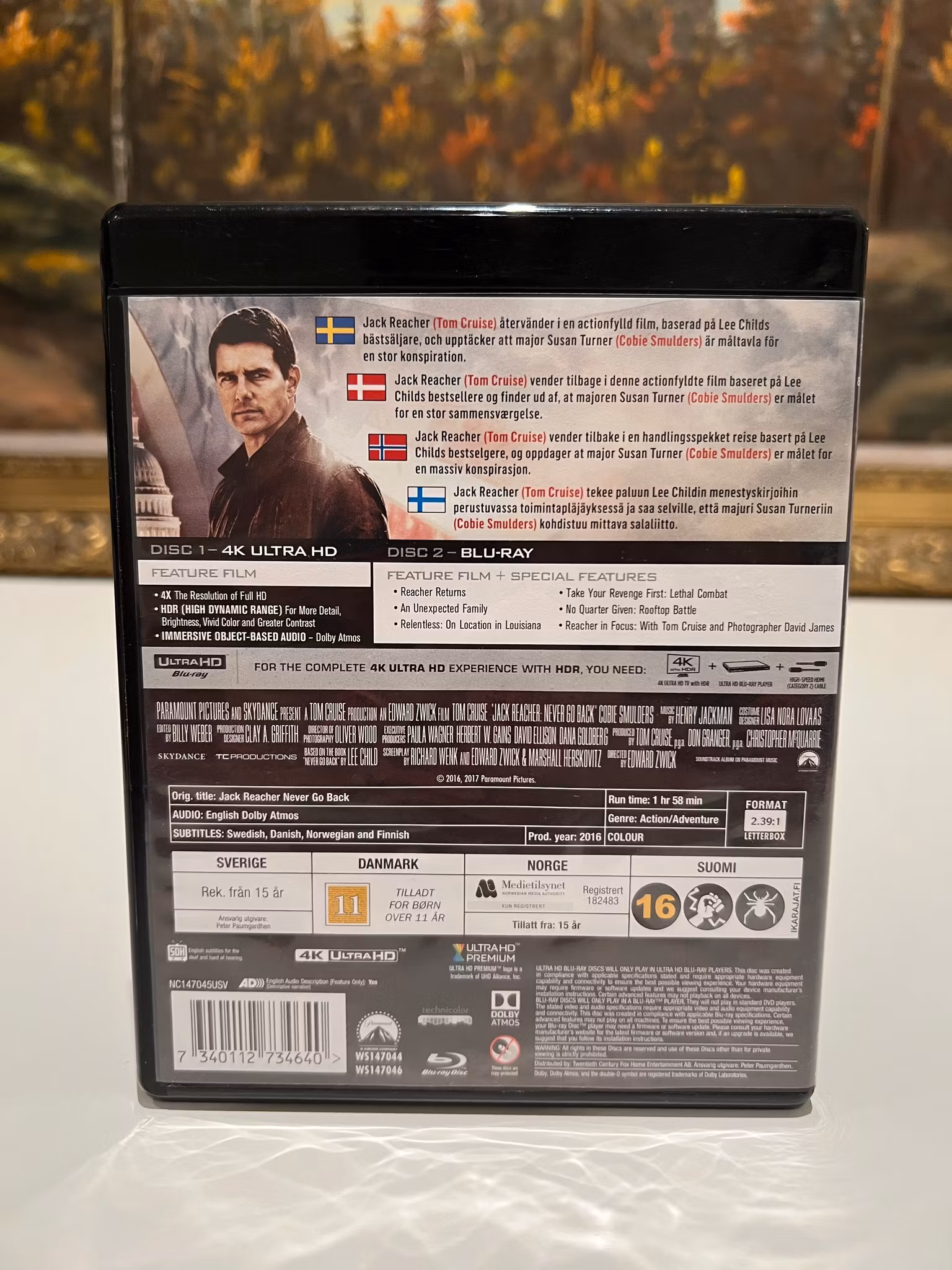 Tom Cruise Àr tillbaka som den laglöse militÀrutredaren Jack Reacher i denna intensiva actionthriller. Reacher mÄste avslöja en stor konspiration för att rentvÄ sitt namn och rÀdda en militÀrmajor i fara. Upplev spÀnningen och de hÄrda striderna i knivskarp 4K-kvalitet!