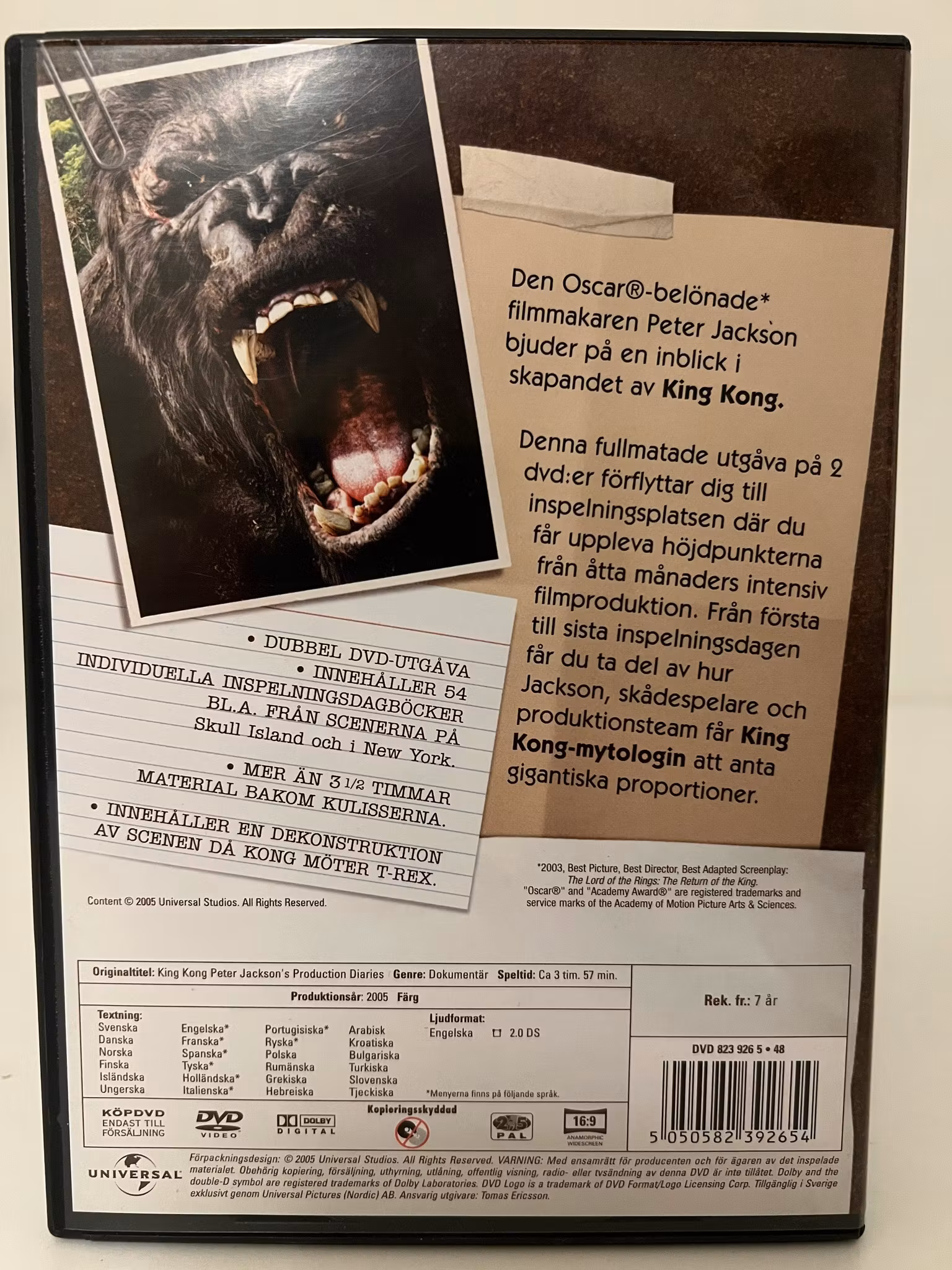 FrÄn första inspelningsdagen till sista fÄr du följa hur Jackson, skÄdespelarna och hela produktionsteamet fÄr King Kong-mytologin att anta gigantiska proportioner. En oumbÀrlig utgÄva för alla filmÀlskare som vill veta hur modern filmvÀsen blir till.