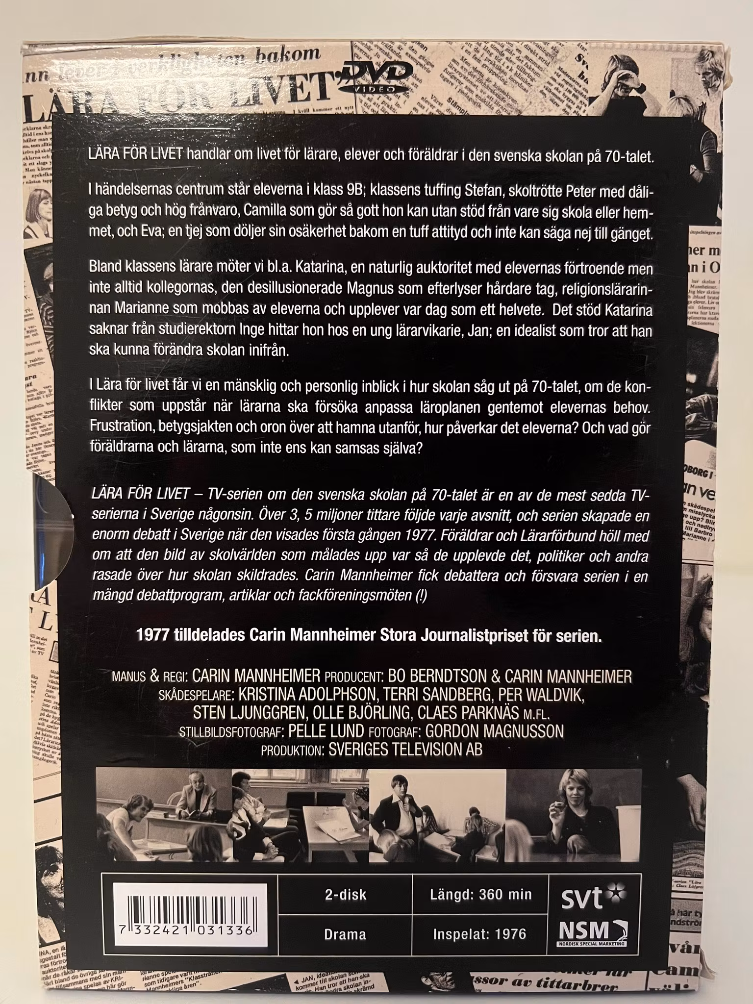 Över 3,5 miljoner tittare följde varje avsnitt när Lära för livet visades första gången 1977. Carin Mannheimers serie om livet för lärare, elever och föräldrar skapade en enorm debatt och gav en mänsklig och personlig inblick i 70-talets skolvärld.
