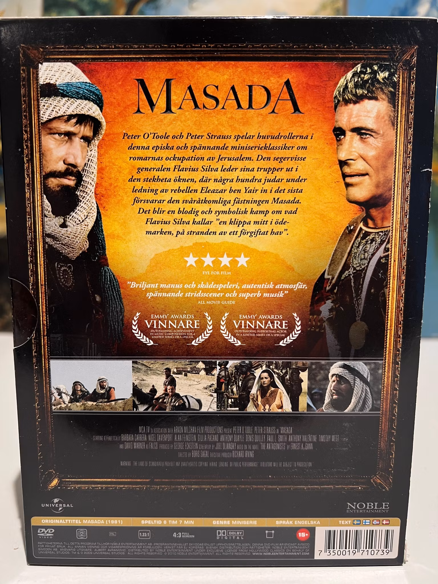 Peter O'Toole och Peter Strauss spelar huvudrollerna i denna episka och spÀnnande miniserieklassiker om romarnas ockupation av Jerusalem. Den segervisse generalen Flavius Silva leder sina trupper ut i den stekheta öknen, dÀr nÄgra hundra judar under ledning av rebellen Eleazar ben Yair tagit sin sista tillflykt i den svÄrtillgÀngliga fÀstningen Masada.