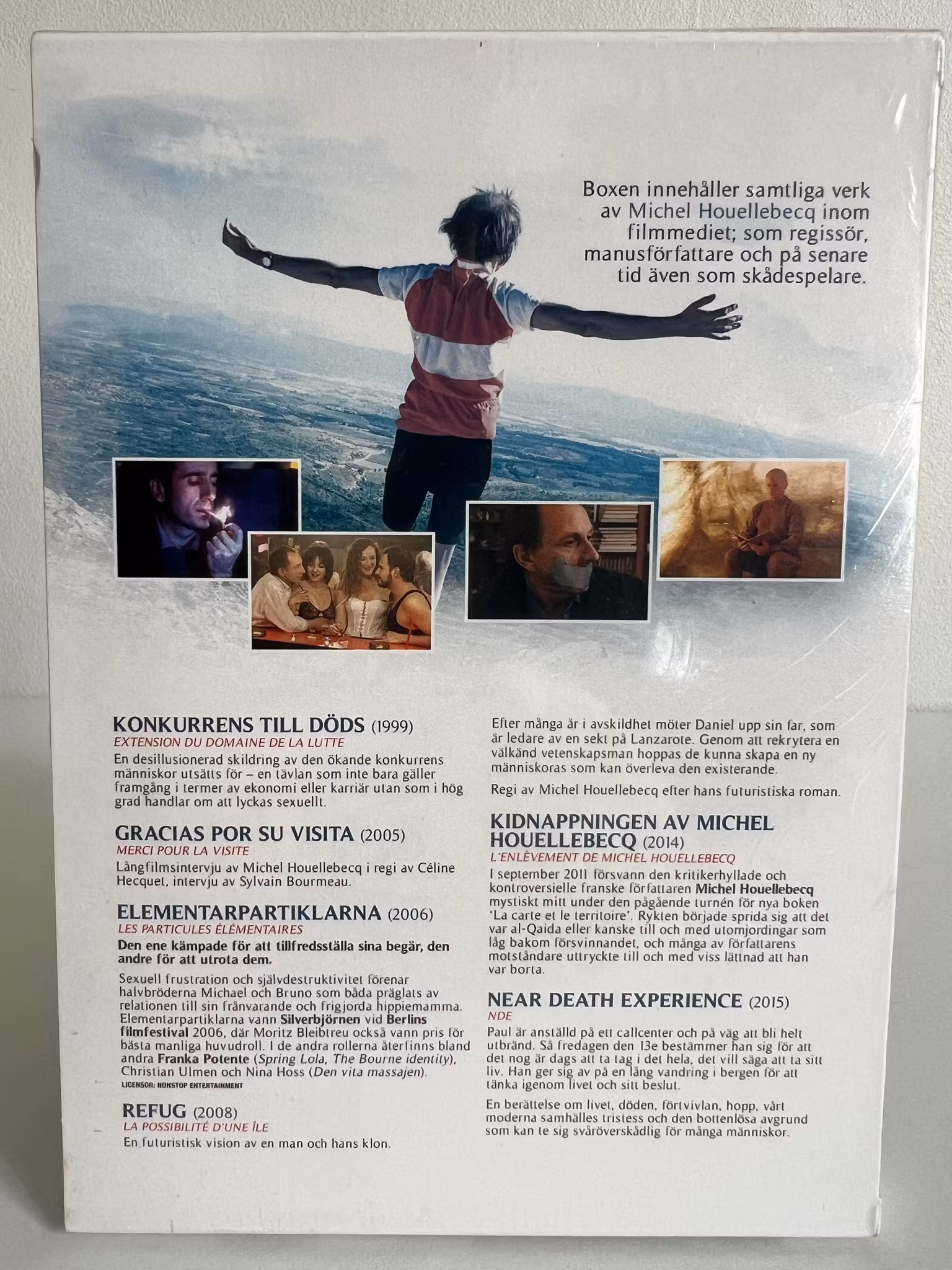 Denna samlingsbox innehåller samtliga verk av Michel Houellebecq inom filmmediet – som regissör, manusförfattare och på senare tid även som skådespelare. Houellebecq är känd för sina provocerande skildringar av det moderna samhällets ensamhet och moraliska förfall, och denna box ger en komplett bild av hans filmiska vision.