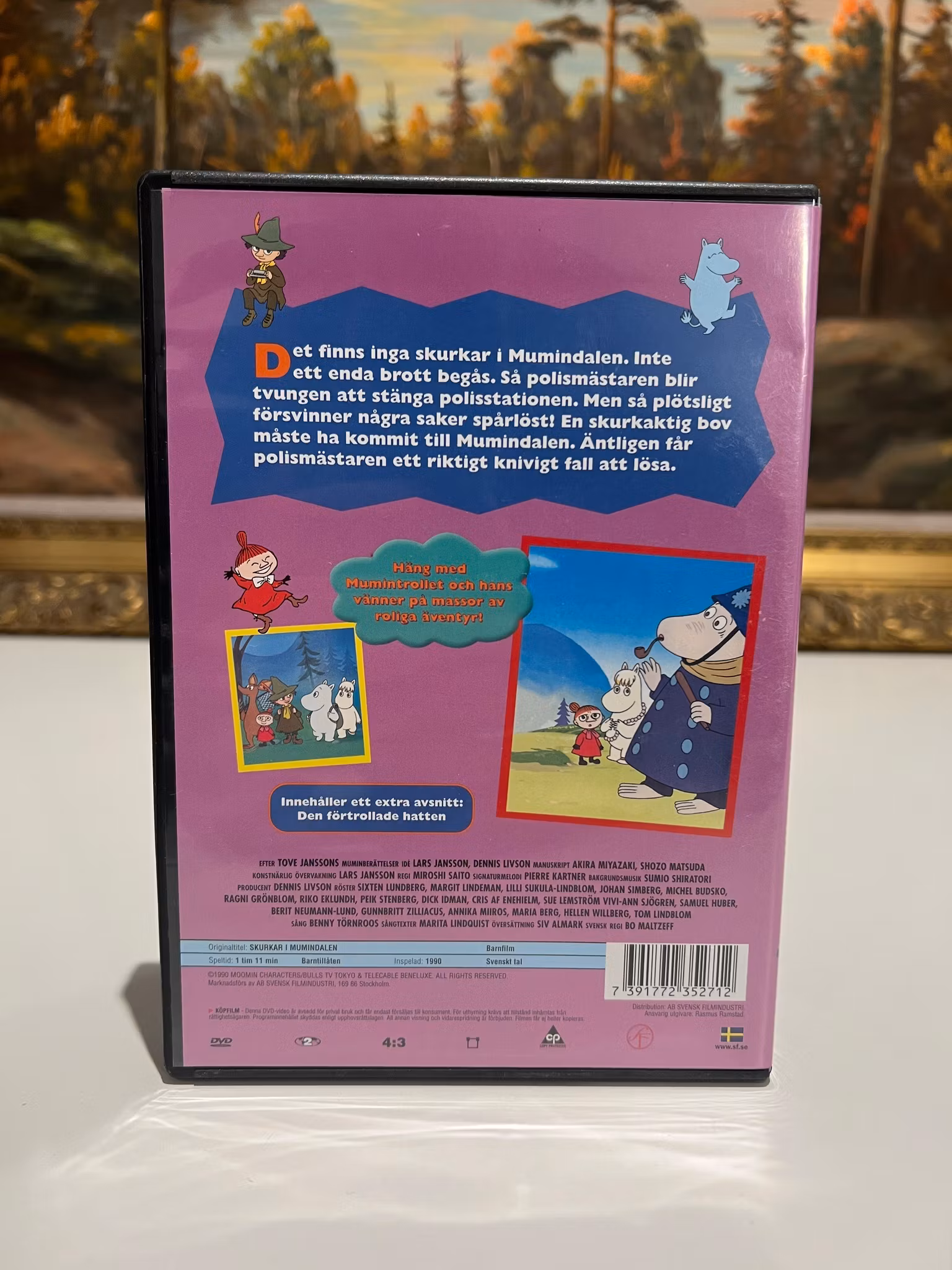 PolismÀstaren (med svensk röst av Tom Lönnbom) har fÄtt ett riktigt knivigt fall att lösa. Tillsammans med Mumintrollet, Sniff och Lilla My mÄste han hitta den skyldige, som kanske har gömt sig bland Muminfamiljens vÀnner. Följ med Mumintrollet och hans vÀnner pÄ jakt efter skurken, samtidigt som de lÀr sig att det finns annat Àn bara lugn och ro i den idylliska dalen. UtgÄvan innehÄller dessutom ett extra avsnitt: Det Förlovade HÀftet!