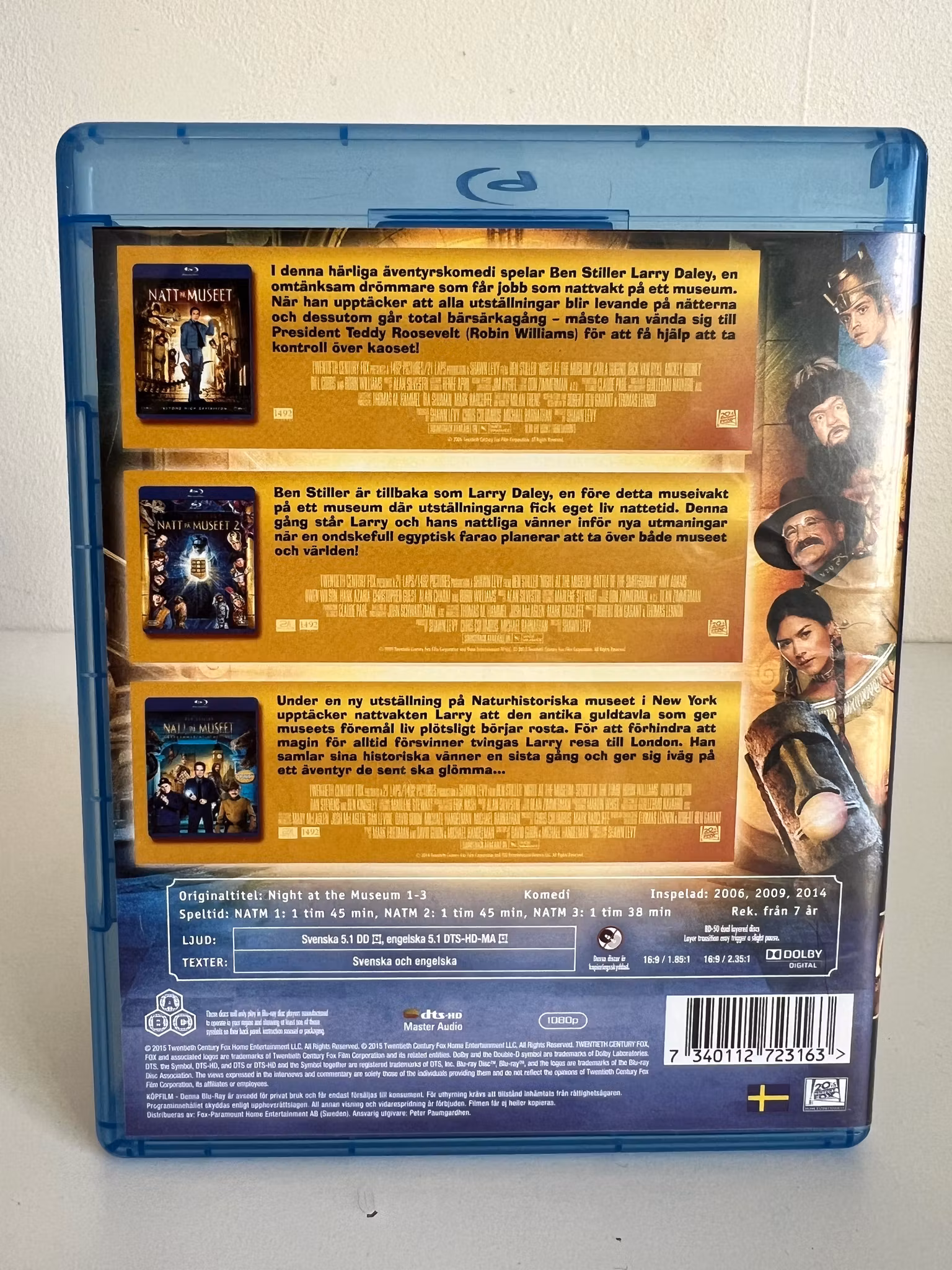 Denna samling innehåller alla tre filmerna om den otursförföljde nattvakten Larry Daley: