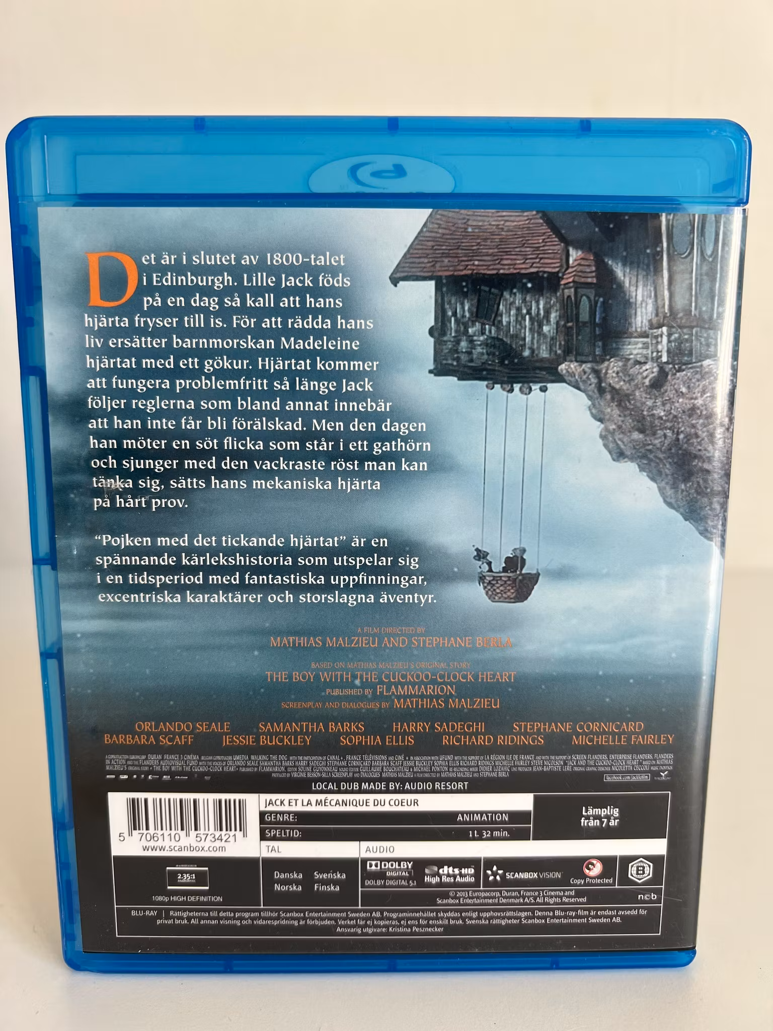 Men den dagen han möter en söt flicka som står i ett gathörn och sjunger med den vackraste röst man kan tänka sig, sätts hans mekaniska hjärta på hårt prov... Pojken med det tickande hjärtat är ett storslaget äventyr fyllt av excentriska karaktärer och magisk atmosfär.