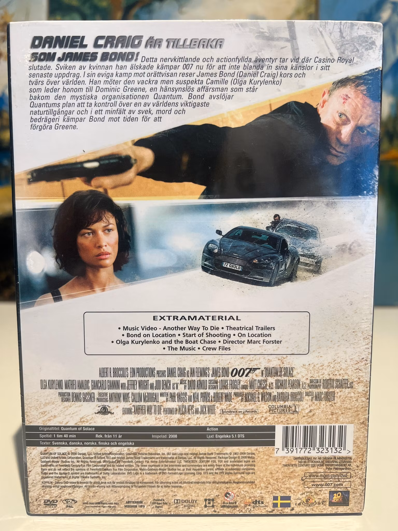 SpÄren leder honom till Dominic Greene, en hÀnsynslös affÀrsman som stÄr bakom den mystiska organisationen Quantum. NÀr Bond avslöjar en plan att ta kontroll över en av vÀrldens viktigaste naturtillgÄngar, tvingas han navigera i ett minfÀlt av svek, mord och bedrÀgerier för att stoppa Greene innan det Àr för sent.