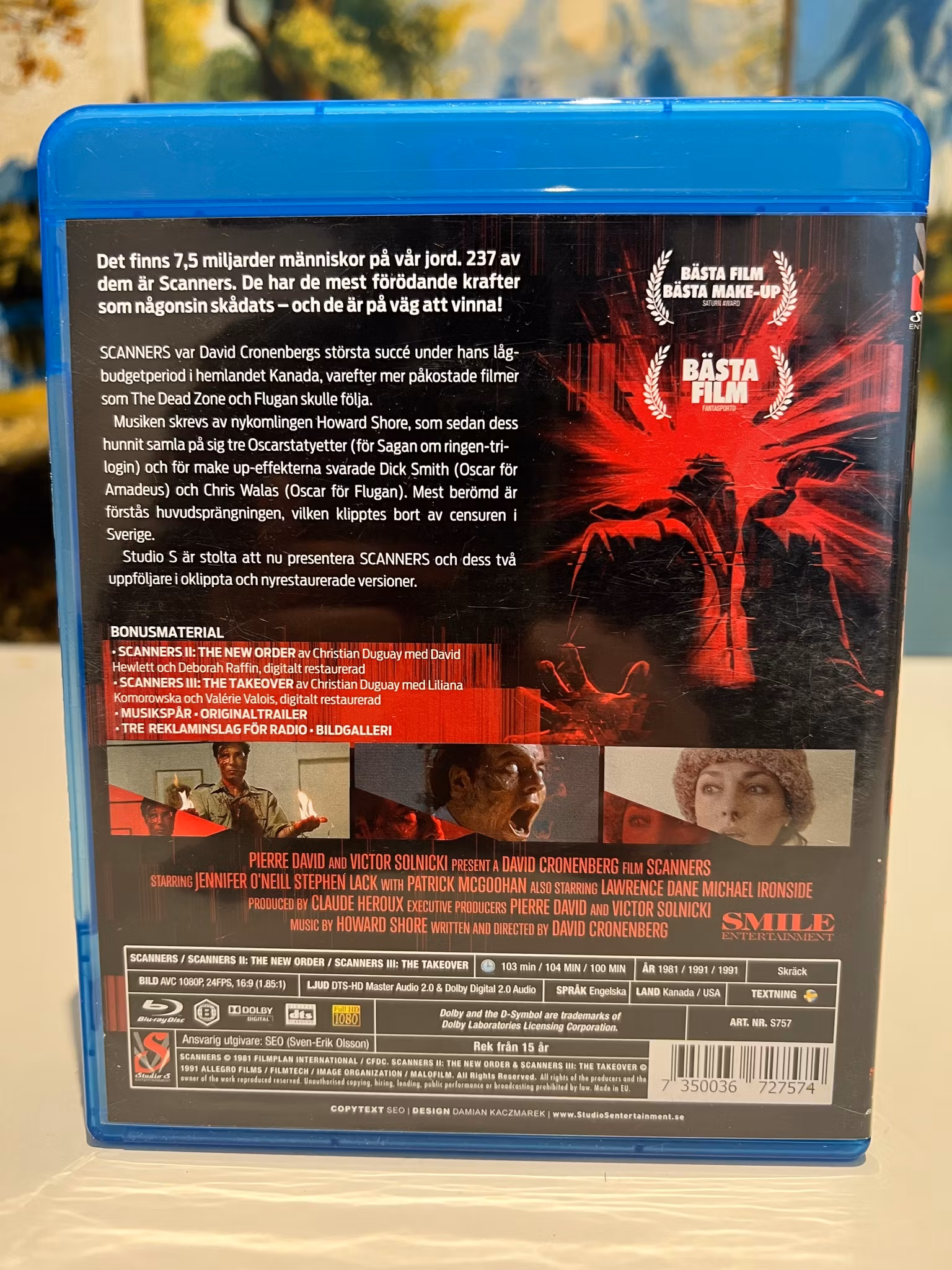 HĂ€r Ă€r den kompletta samlingen med David Cronenbergs banbrytande sci-fi-skrĂ€ckis och dess tvĂ„ uppföljare. "Scanners" Ă€r mĂ€nniskor med extraordinĂ€ra telepatiska krafter som kan lĂ€sa tankar, kontrollera andras nervsystem och â i filmhistoriens kanske mest kĂ€nda specialeffektscen â fĂ„ huvuden att explodera.