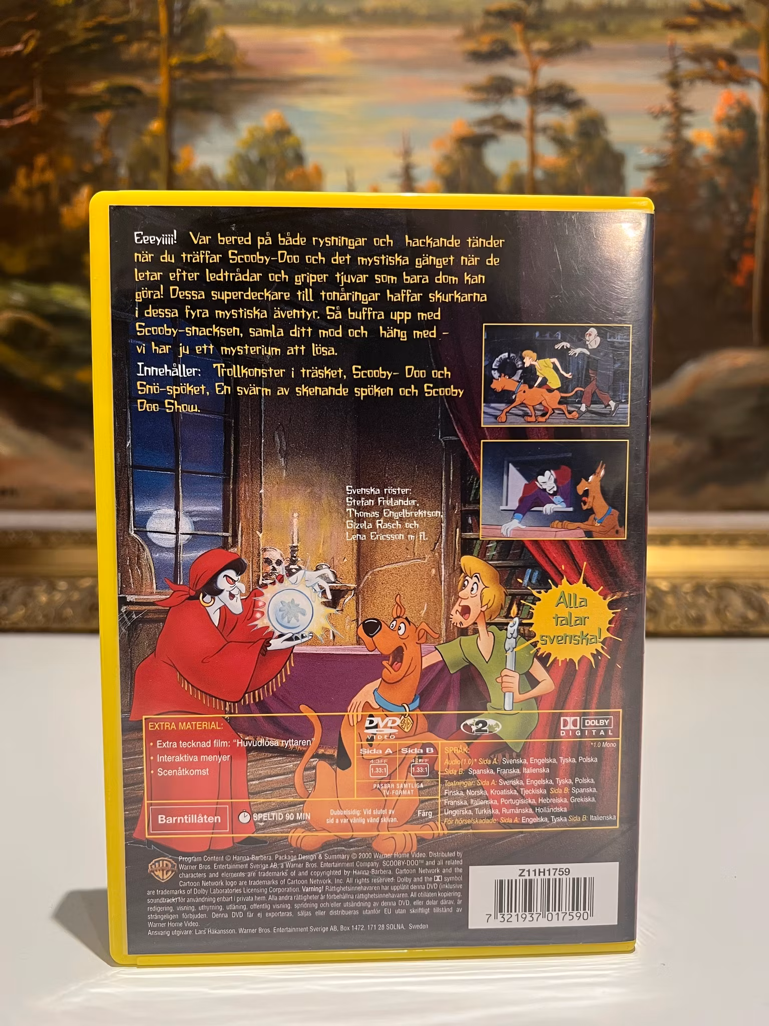 Denna DVD innehÄller fyra klassiska Scooby-Doo-mysterier dÀr gÀnget mÄste hantera allt frÄn trollkonster i ett trÀd till lÀskiga spökframtrÀdanden. Följ med Scooby-Doo och Shaggy nÀr de springer ifrÄn skrÀmmande skurkar, samt se hur Fred, Daphne och Velma löser gÄtorna.