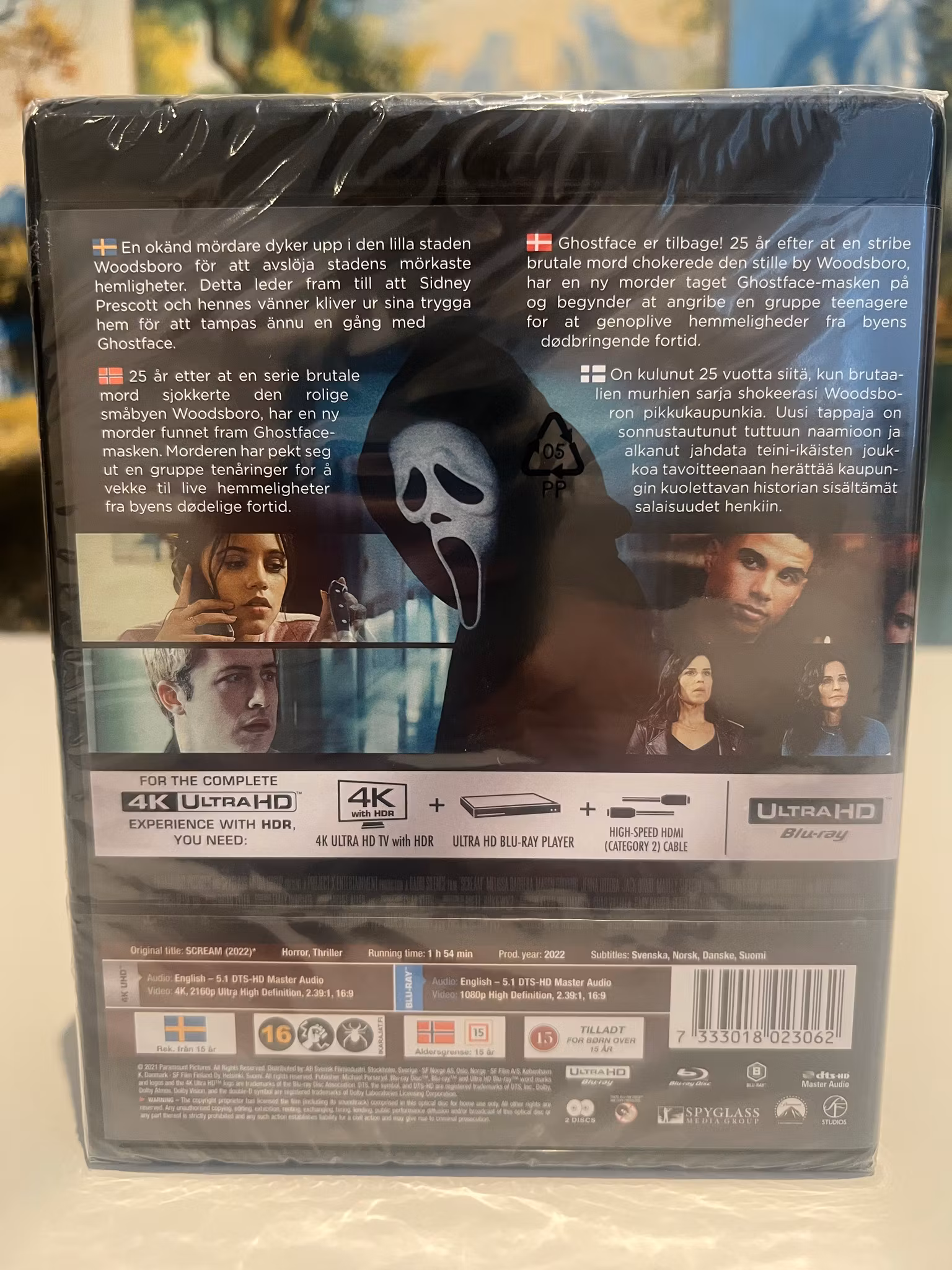 Sidney Prescott (Neve Campbell) och hennes vÀnner tvingas Äterigen kliva ur sina trygga hem för att tÀmjas med Ghostface en gÄng för alla. Denna hyllade nystart av filmserien kombinerar klassisk Scream-atmosfÀr med nya, blodiga vÀndningar. Upplev skrÀcken i knivskarp 4K-upplösning.