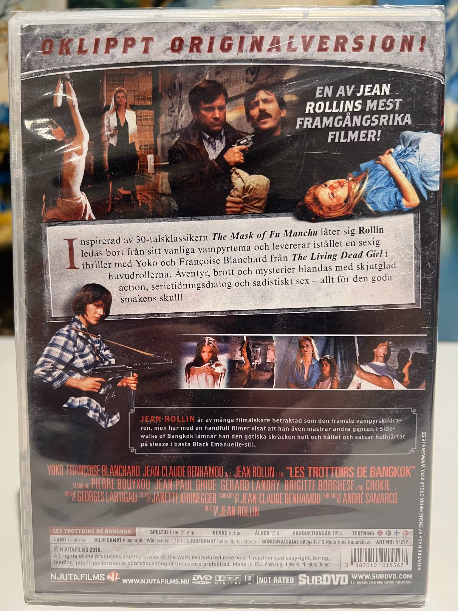 Jean Rollin Àr av mÄnga filmÀlskare betraktad som den frÀmste vampyrskildraren, men har med en handfull filmer visat att han Àven mÀstrar andra genrer. I Sidewalks of Bangkok lÀmnar han den gotiska skrÀcken helt och hÄllet och satsar helhjÀrtat pÄ sleaze i bÀsta Black Emanuelle-stil.