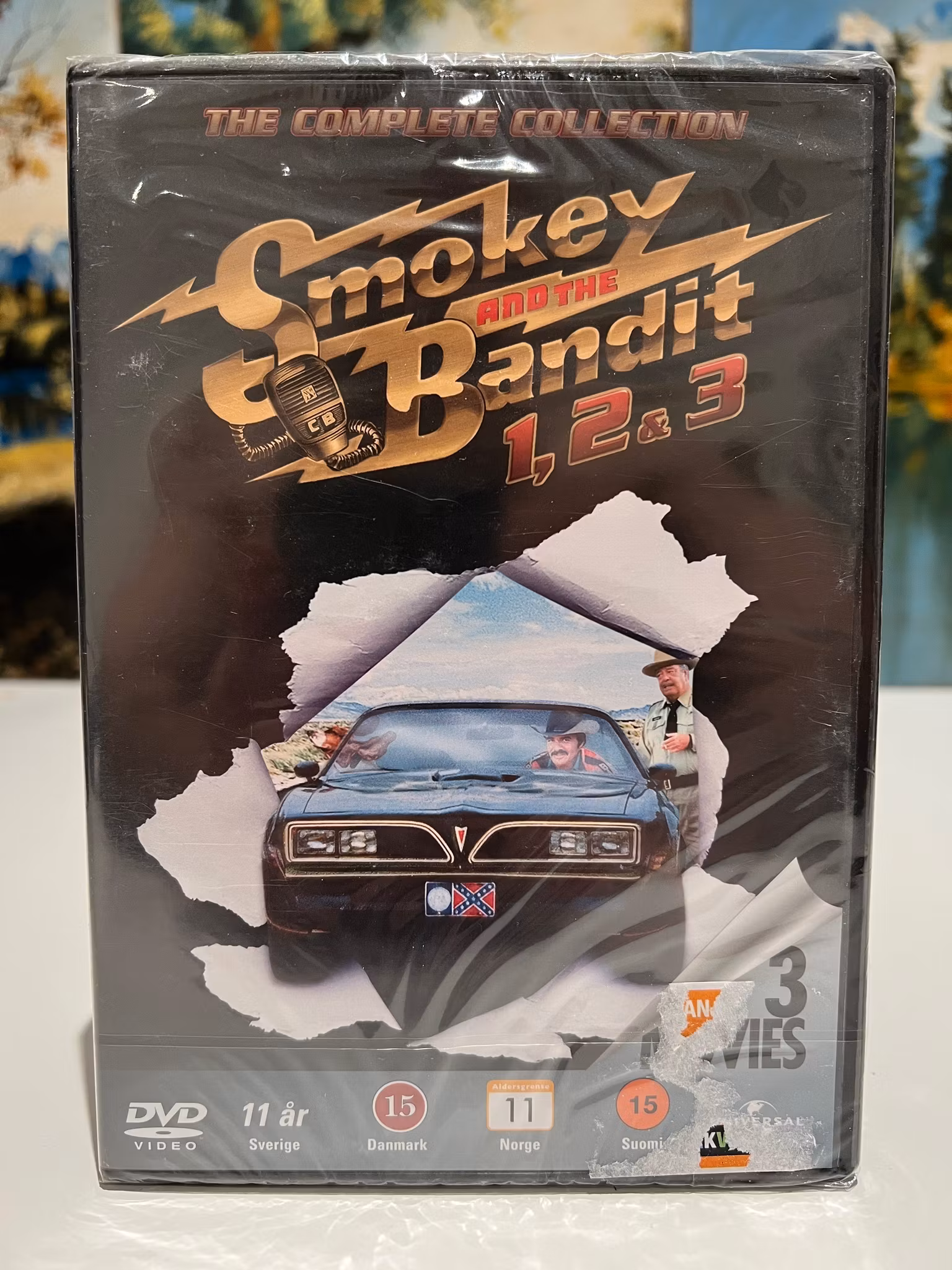 HÀr Àr den kompletta samlingen med alla tre filmerna om The Bandit (Burt Reynolds), lastbilschauffören som aldrig backar för en utmaning. Tillsammans med sin partner Cledus "Snowman" Snow (Jerry Reed) och rymmerskan Frog (Sally Field) retar de gallfeber pÄ den envise sheriffen Buford T. Justice (Jackie Gleason).
