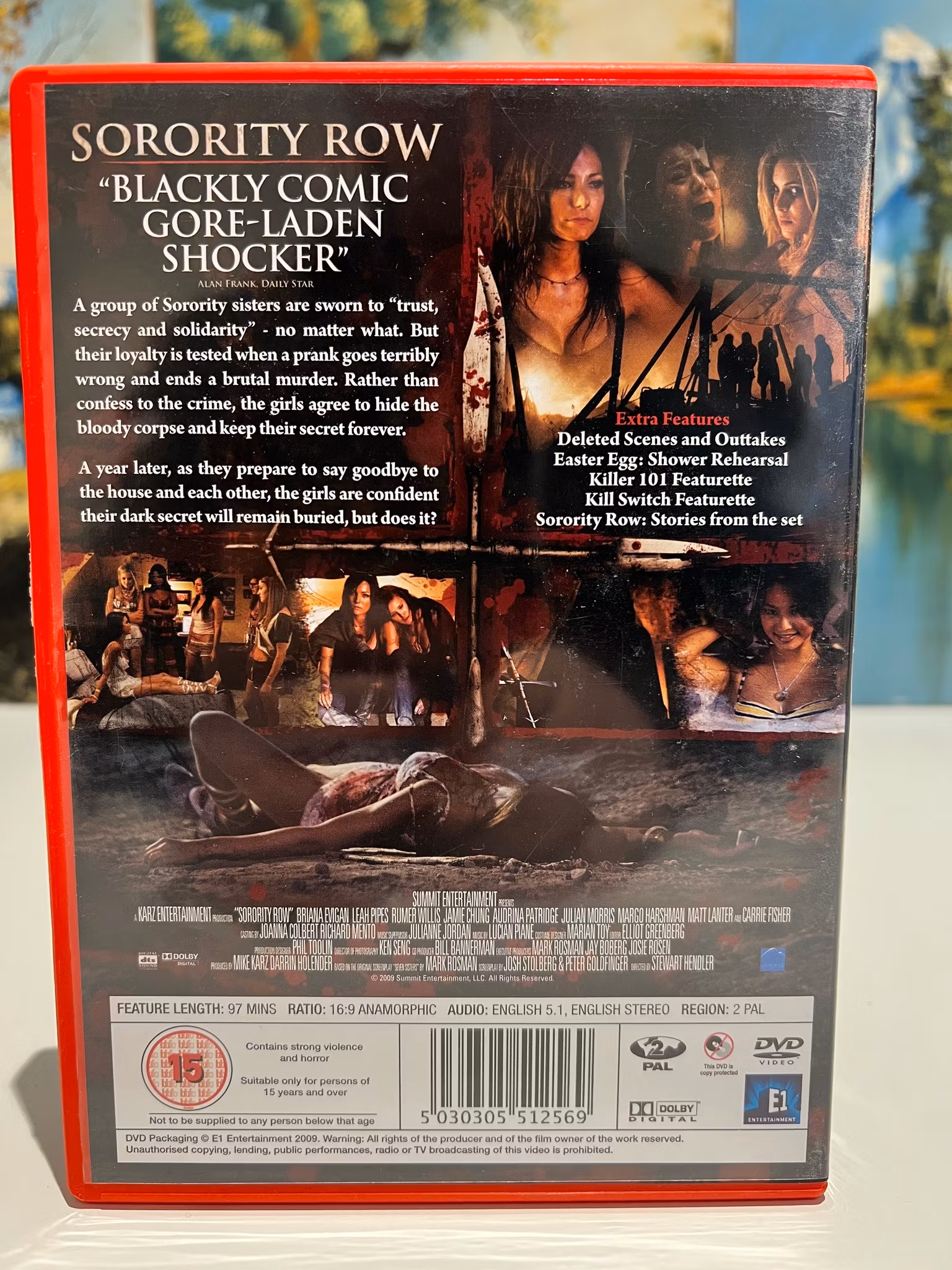 InnehÄll: Deleted Scenes and Outtakes; Easter Egg: Shower Rehearsal; Killer 101 Featurette; Kill Switch Featurette; Sorority Row: Stories from the set.