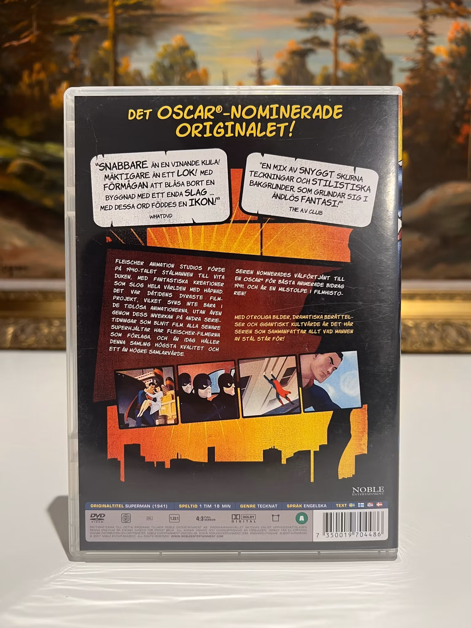 Med otroliga, stilistiska teckningar och en oändlig fantasi bjuder filmerna på en oslagbar kombination av Sci-Fi-äventyr och action. Följ den klassiska Stålmannen när han flyger över Metropolis, räddar oskyldiga och slåss mot det tidiga 40-talets mest fantastiska skurkar. De detaljrika animationerna och den mörka, film-noir-inspirerade stilen är helt otroliga och ser ut som om de hoppat direkt ut ur serietidningarna.