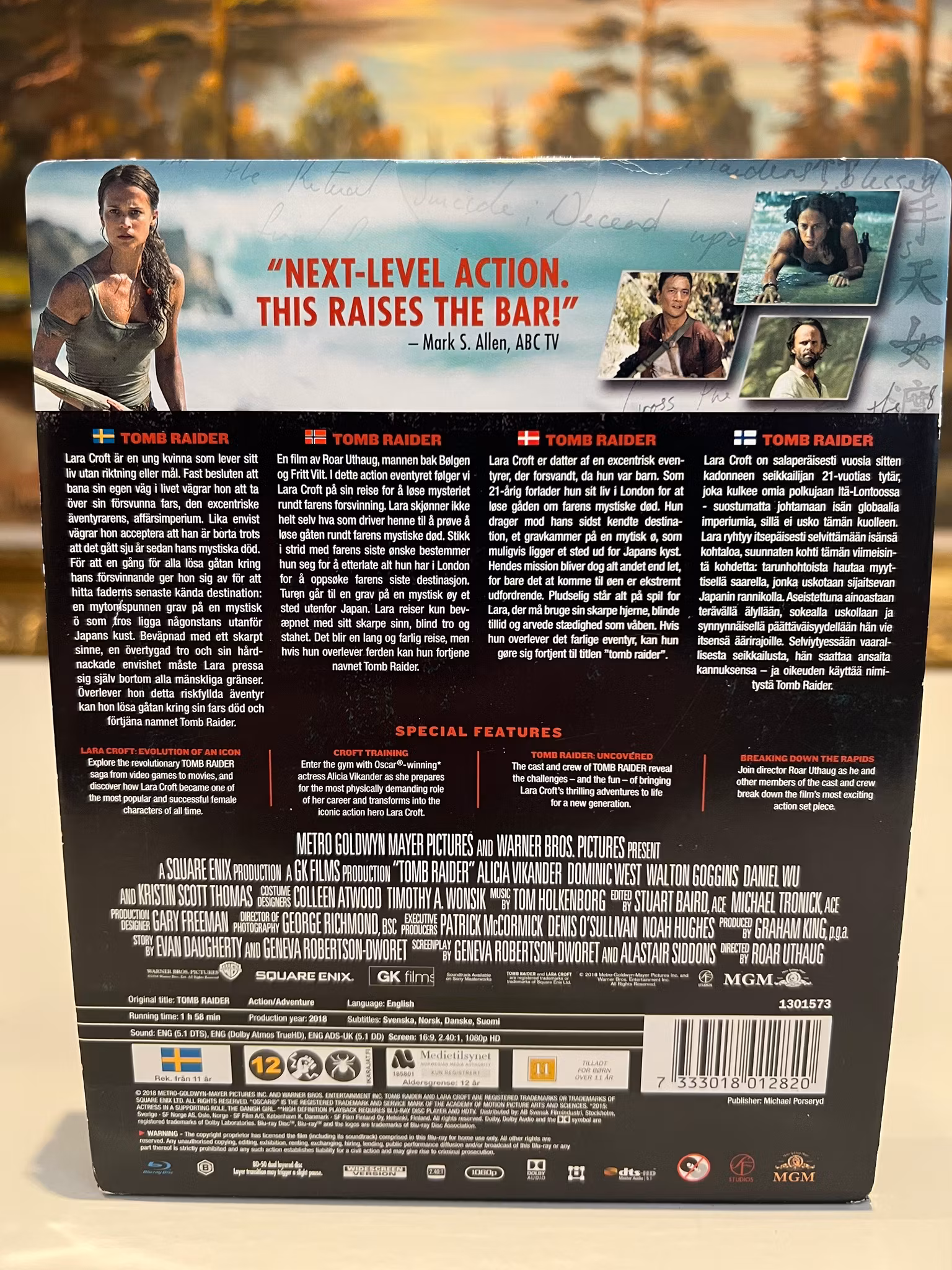 "NEXT-LEVEL ACTION. THIS RAISES THE BAR!" Denna actionspÀckade nyversion av den ikoniska spelserien Àr en rÄ och jordnÀra ursprungshistoria. I huvudrollen som Lara Croft ser vi den Oscarsbelönade svenska stjÀrnan Alicia Vikander.