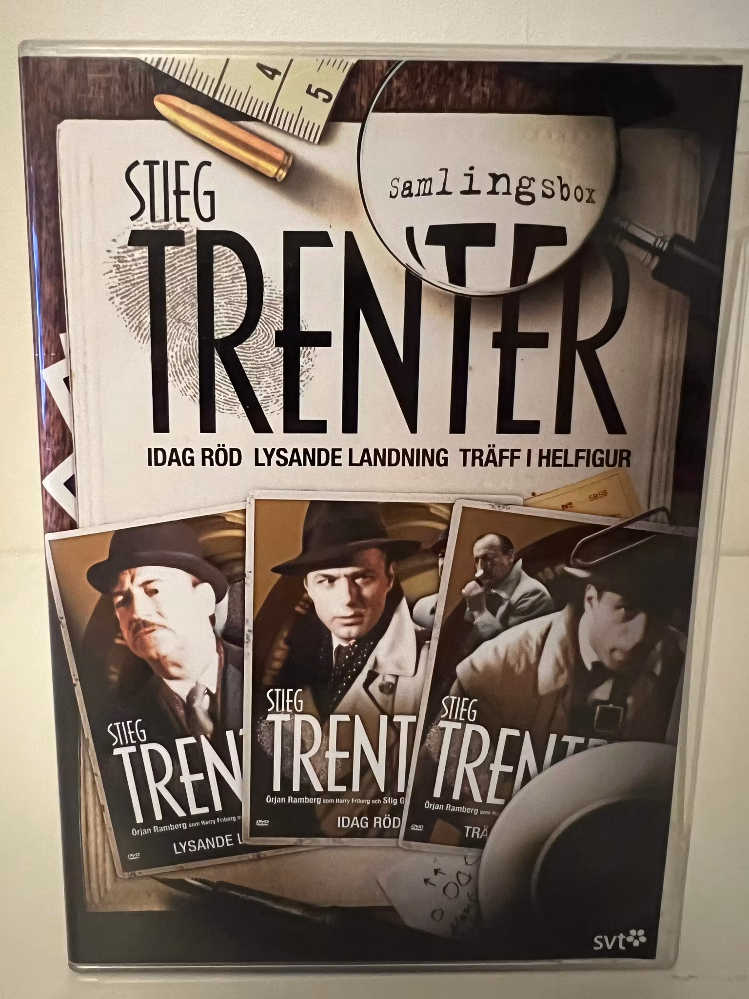 Denna samlingsbox innehåller tre av de mest kända filmatiseringarna av Stig Trenters pusseldeckare, där vi får följa fotografen och amatördetektiven Harry Friberg i ett stämningsfullt Stockholm.