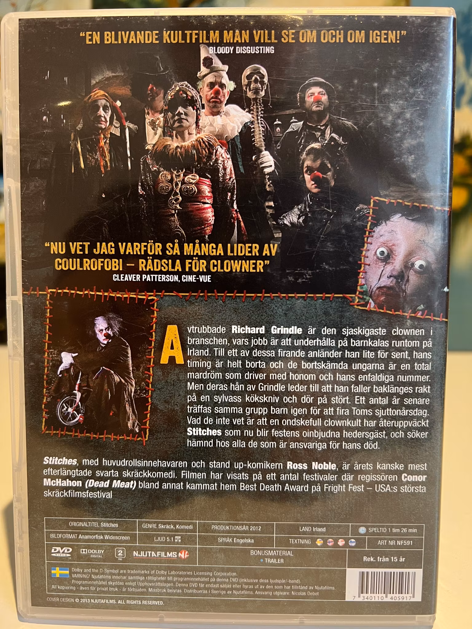 Stitches, med huvudrollsinnehavaren och stand up-komikern Ross Noble, är en efterlängtad svart skräckkomedi. Regissören Conor McMahon (Dead Meat) har med denna film bland annat kammat hem Best Death Award på Fright Fest.