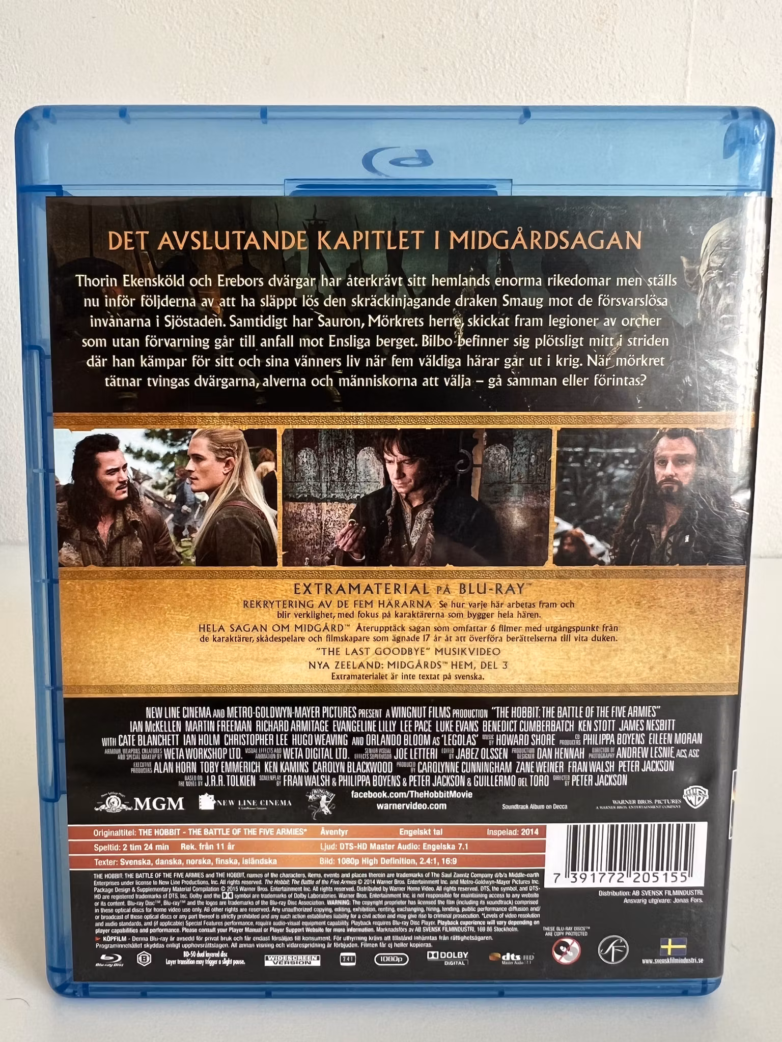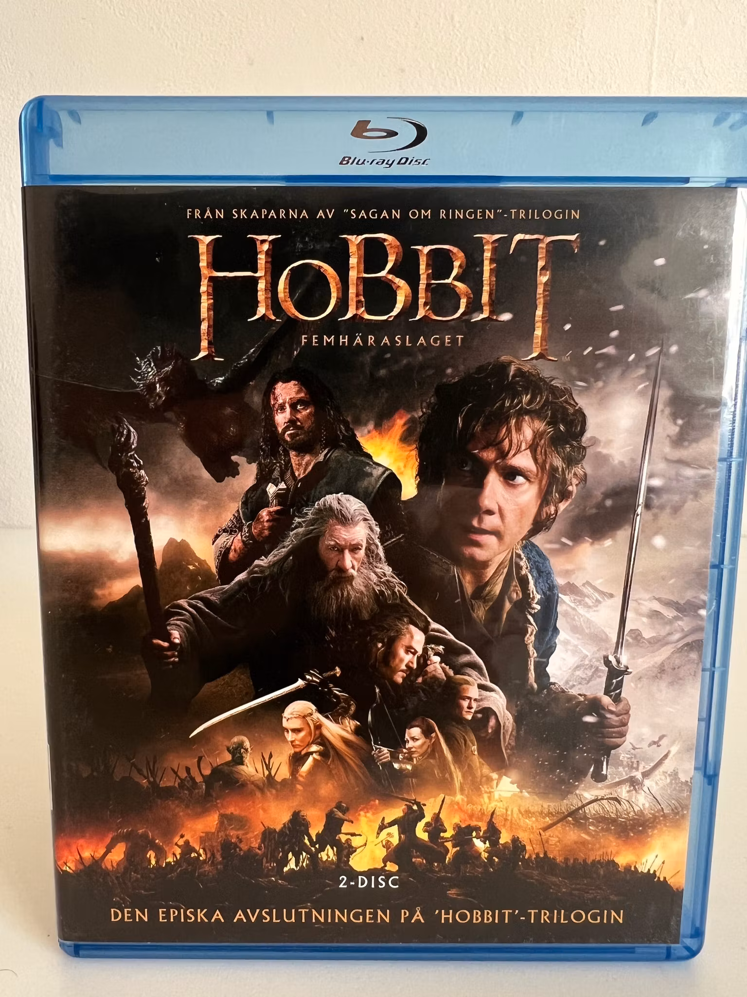 Bilbo befinner sig plötsligt mitt i striden där han kämpar för sitt och sina vänners liv när fem väldiga härar går ut i krig. När mörkret tätnar tvingas dvärgarna, alverna och människorna att välja – gå samman eller förintas?