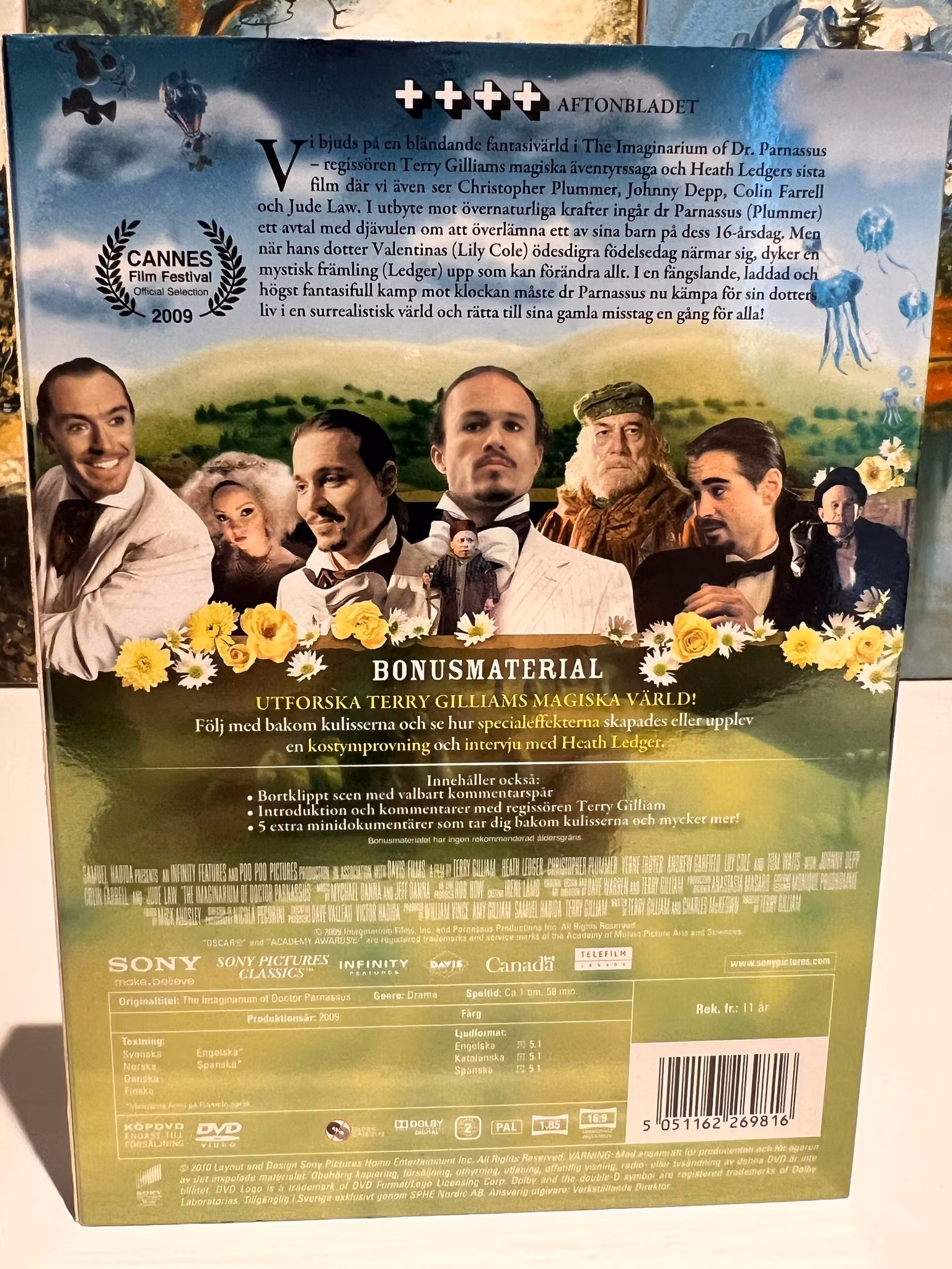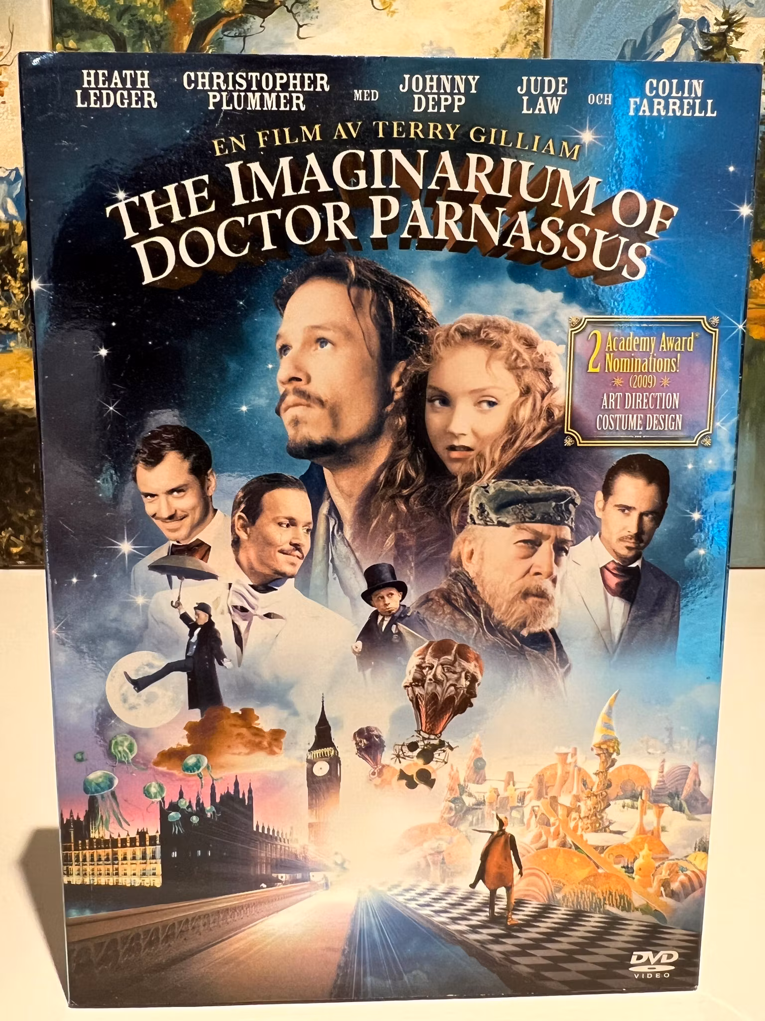 Filmen Àr kÀnd som Heath Ledgers sista rollprestation, dÀr hans karaktÀr i fantasivÀrlden Àven gestaltas av Johnny Depp, Colin Farrell och Jude Law.