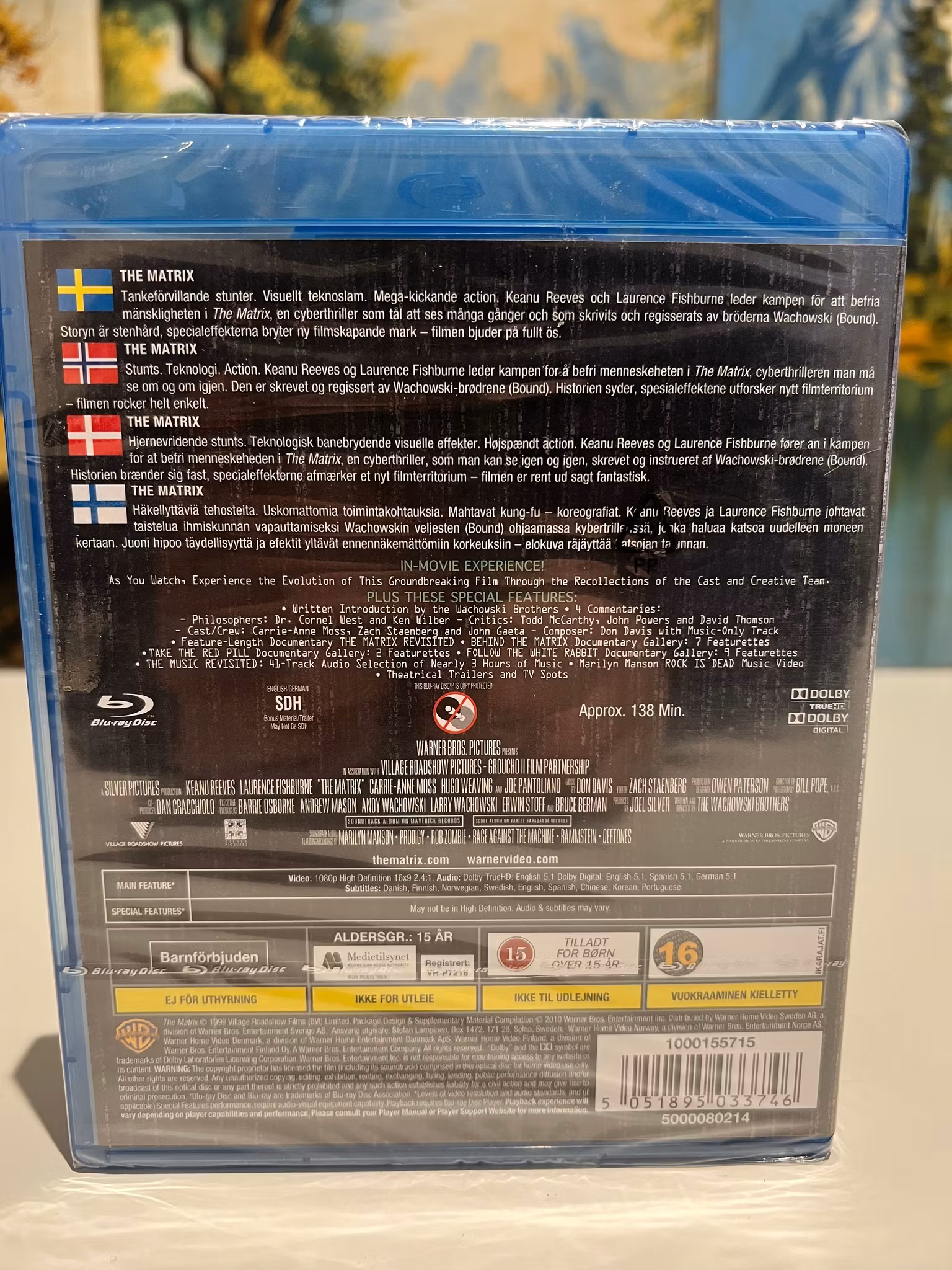 Special Features: In-Movie Experience!, Written Introduction by the Wachowski Brothers, 4 Commentaries, 7 Featurettes, "The Matrix Revisited" Documentary, 9 Featurettes behind "The Matrix", 2 Featurettes about "The Red Pill", Trailers and TV Spots.
