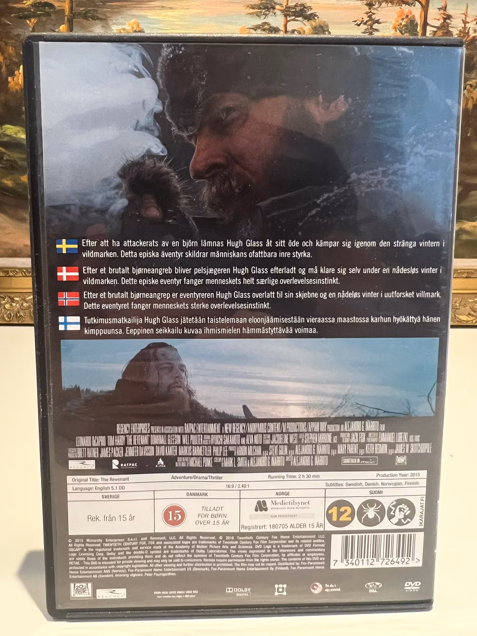 Den brutala och visuellt häpnadsväckande Oscarsvinnaren i regi av Alejandro G. Iñárritu. Upplev Leonardo DiCaprio i sin Oscarnominerade roll som pälsjägaren Hugh Glass i en oförlåtande kamp för överlevnad i 1800-talets amerikanska vildmark. Ett måste i samlingen för alla som älskar intensiva Western- och överlevnadsdrama.