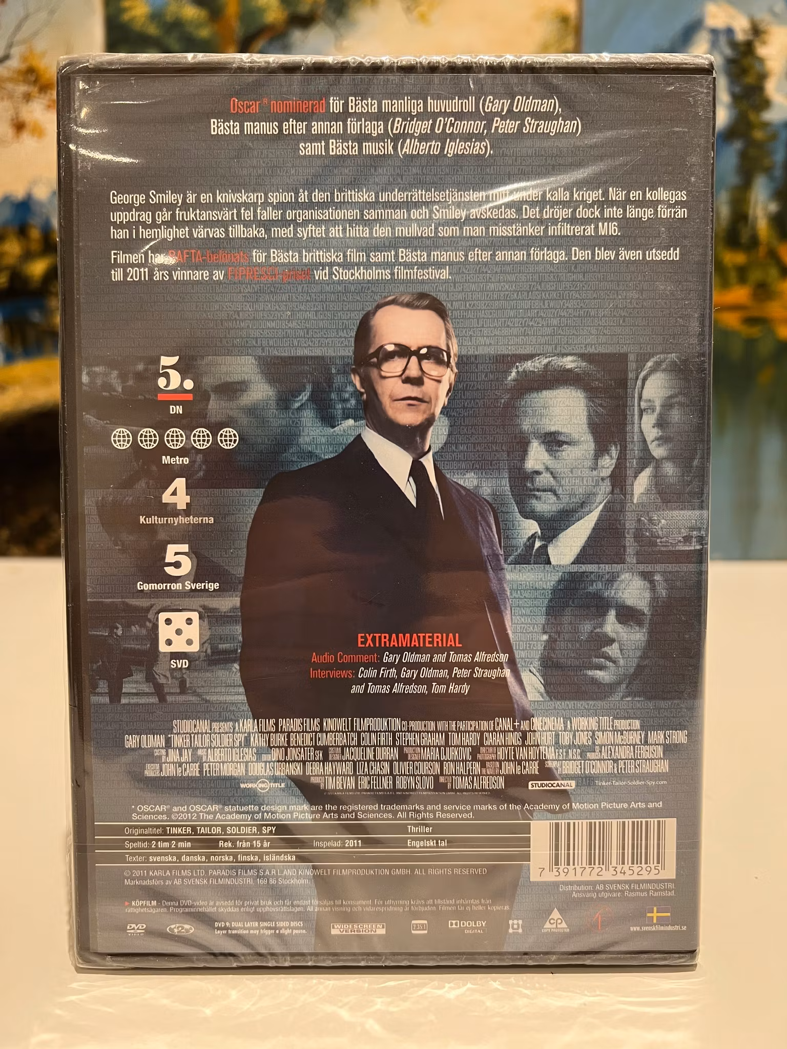 Hans uppdrag är att identifiera förrädaren bland sina tidigare kollegor, en jakt som kräver både list och tålamod i en värld av dubbelspel och paranoia. Filmen är regisserad av svenske Tomas Alfredson (Låt den rätte komma in) och har hyllats världen över. Den nominerades till tre Oscars, bland annat för Bästa manliga huvudroll (Oldman) och Bästa manus.